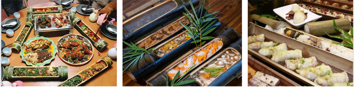 为您独家奉上最具时尚体验的“基诺山寨”餐厅—基诺竹筒宴。这是视觉、味觉、听觉的三重盛宴,五彩斑斓的食材、普洱茶入菜的独特口感、基诺族姑娘、小伙儿的热情祝酒歌,喝一口清冽甘醇的基诺自烤酒,品味其中的野性与豪迈,这才是真正的时尚之旅