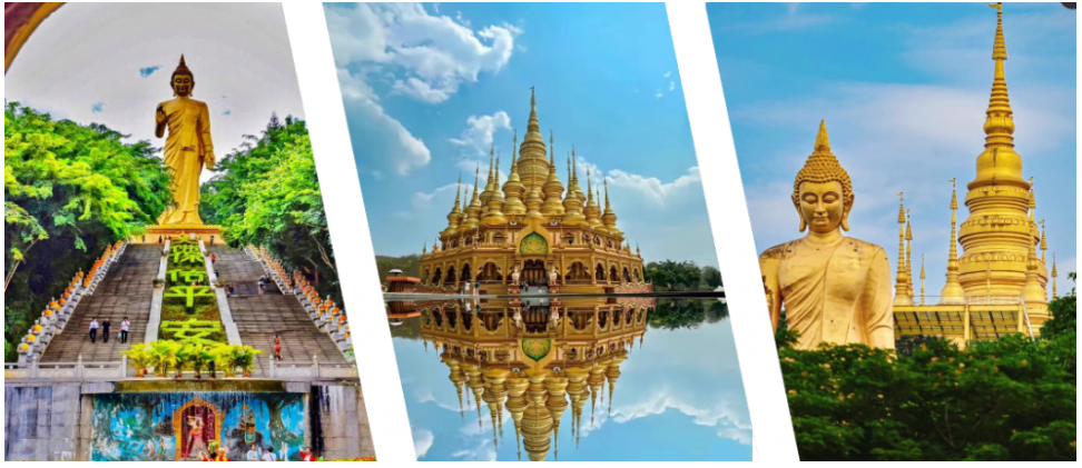 在古代傣王朝的皇家寺院“景飘佛寺”的原址上恢复重建的;景区以佛祖释迦牟尼的生平及佛寺活动为主线,九龙浴佛、景飘大殿、神石、国殿、吉祥大佛等,充分展示南传佛教的历史与传统文化色彩。从万佛塔前广场俯视景洪市区,旖旎的热带风光尽收眼底,可体验最具傣族传统特色的泼水体验活动,不在泼水节,一样湿身狂欢,尽情释放,佛光普照之下,为您带来更多的祝福。