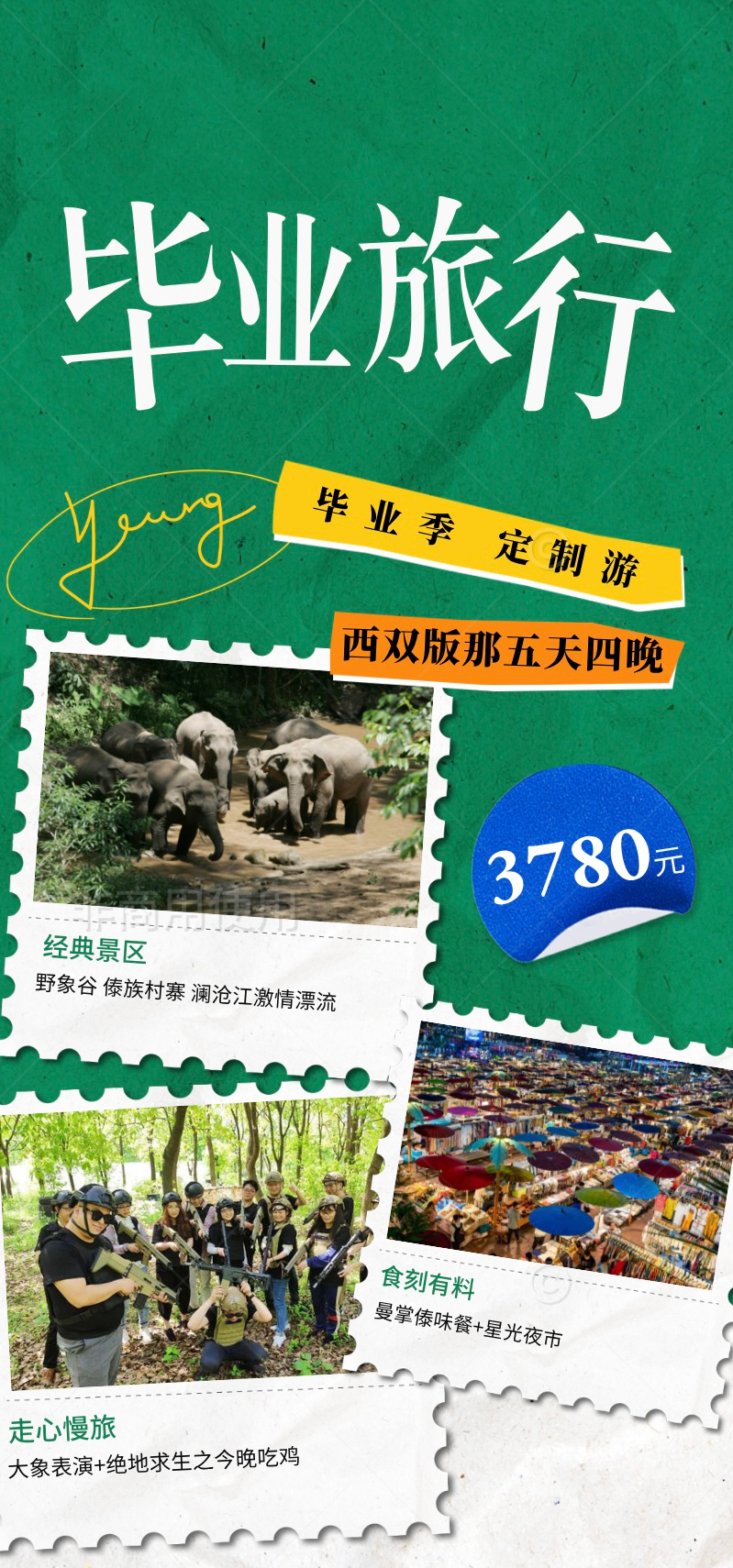 所有活动结束后晚餐来到江边音乐餐吧,来一场毕业party,在这里你可以唱歌、跳舞或是向伙伴们分享旅行喜悦和毕业不舍之情。随后入住吿庄泳池客栈,可选择泳池游泳, 也可选择游览吿庄西双景,【星光夜市】带你领略中国最美夜市,【六国水上集市】带你打卡网红圣地。