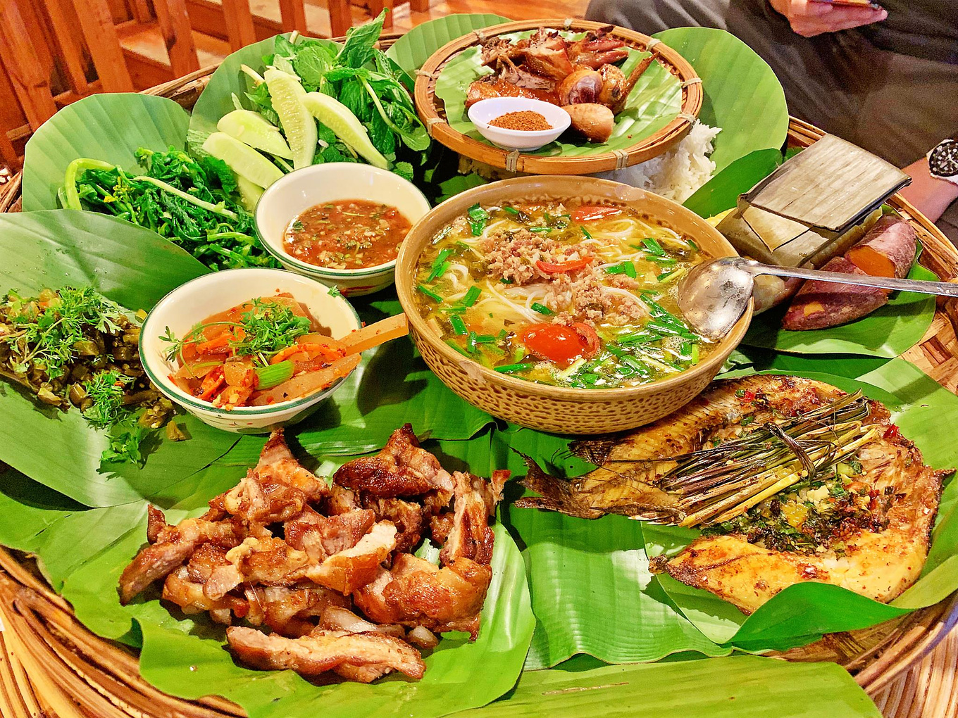 活动结束后,享用我们专门定制的【曼掌傣味餐】此餐食材全是用曼掌人民种植或养殖的最新食材,按照招待贵宾的规格订制。用餐的同时和曼掌人民一起欢歌曼舞,举行颁奖仪式,最后是狂欢时间,每个人都有展示自己才艺的机会,可以选择傣族小哥哥小姐姐与你一起同台!