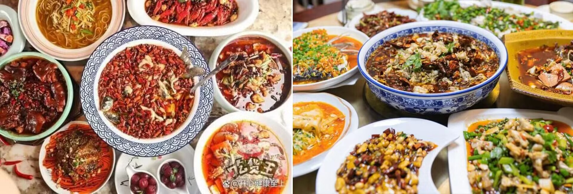 【川菜】:中国特色传统的四大菜系之一;取材广泛,调味多变,菜式多样,口味清鲜醇浓并重,以善用麻辣调味著称。比较有名的店铺:陈麻婆、银杏·金阁店、柴门、红杏酒家、大蓉和等;