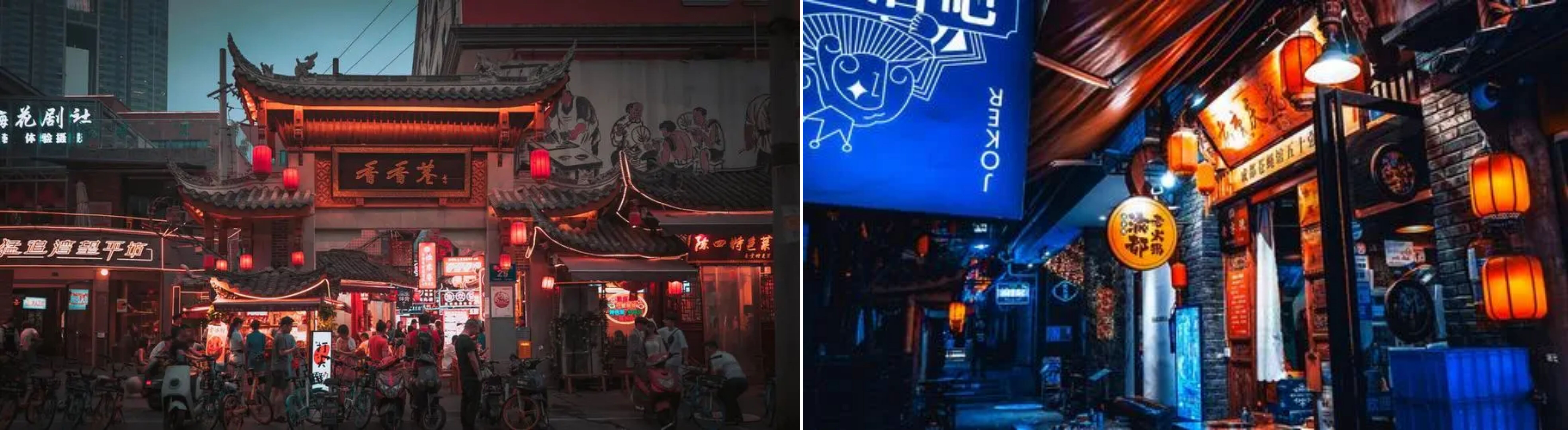 宽巷子集中20多家特色院落,多数都留下保存完好的旧时门脸,充满怀旧气息,是街区人气最旺的地方。在这里再现了成都休闲生活样本。品盖碗茶,吃正宗川菜,体验老成都的风土人情