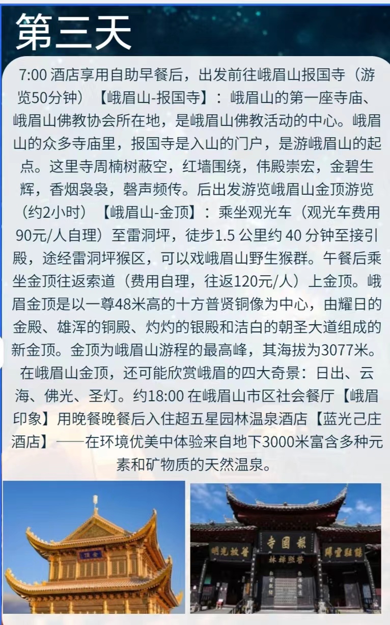 第三天:乐山—峨眉山金顶风景区—报国寺