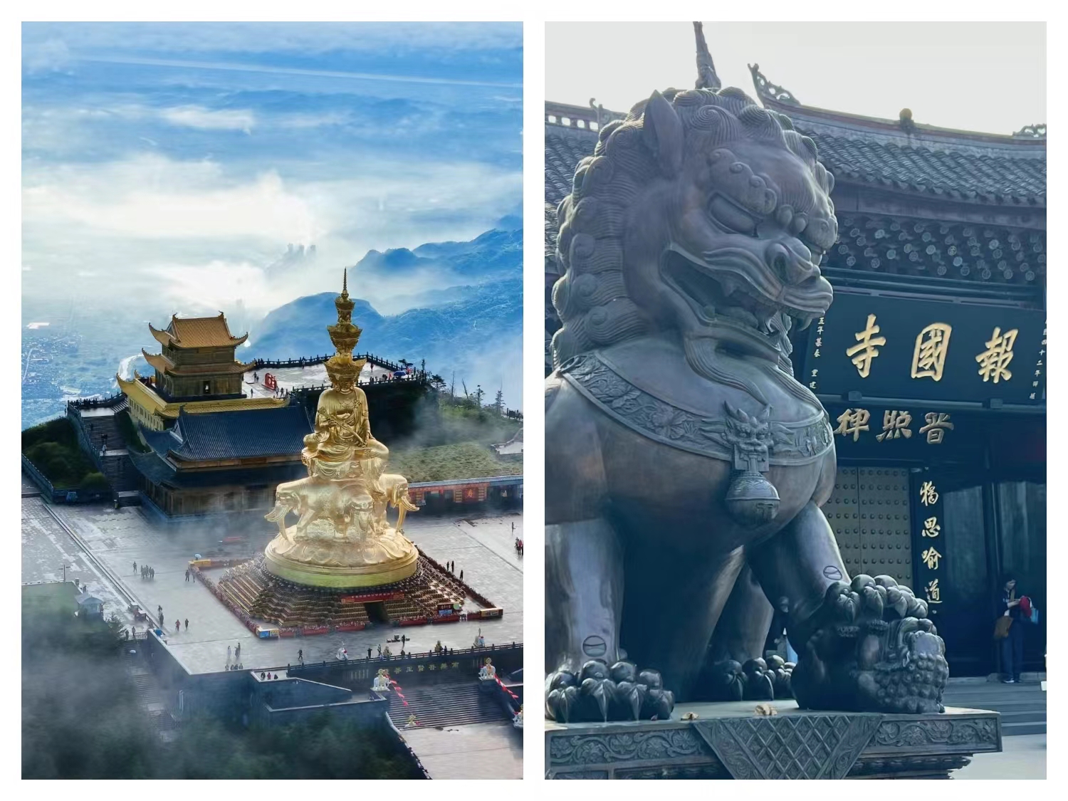 7:00 酒店享用自助早餐后,出发前往峨眉山报国寺(游览50分钟) 【峨眉山-报国寺】:峨眉山的第一座寺庙、峨眉山佛教协会所在地,是峨眉山佛教活动的中心。峨眉山的众多寺庙里,报国寺是入山的门户,是游峨眉山的起点。这里寺周楠树蔽空,红墙围绕,伟殿崇宏,金碧生辉,香烟袅袅,磬声频传。