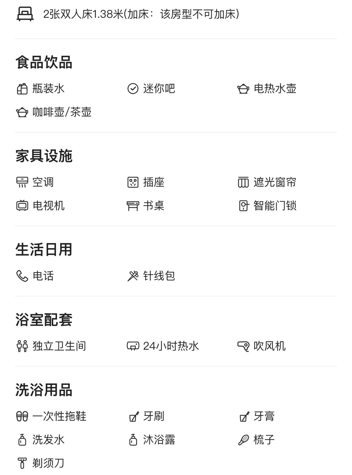 公共区域监控 会议厅 会议厅 自助入住机 储物柜 停车场 储物柜 儿童拖鞋 儿童牙刷 洗衣房 行李寄存 无障碍通道 提供轮椅 吸烟区 餐厅 送餐服务 健身室 盲文标题 净水器 急救包 一氧化碳报警器 安全报警器 净水级 一氧化碳报警器 行政楼层 加湿器 棋牌室 传真/复印 接站服务 多功能厅 火灾报警器 灭火器 安保人员 公共区域监控 楼梯扶手 电梯 新风系统 吸烟区 无烟楼层 手语服务 24小时前台 熨斗/挂烫机 干洗服务0条点评 100%满意都江堰都江堰大道2号, 611830¥198起 -