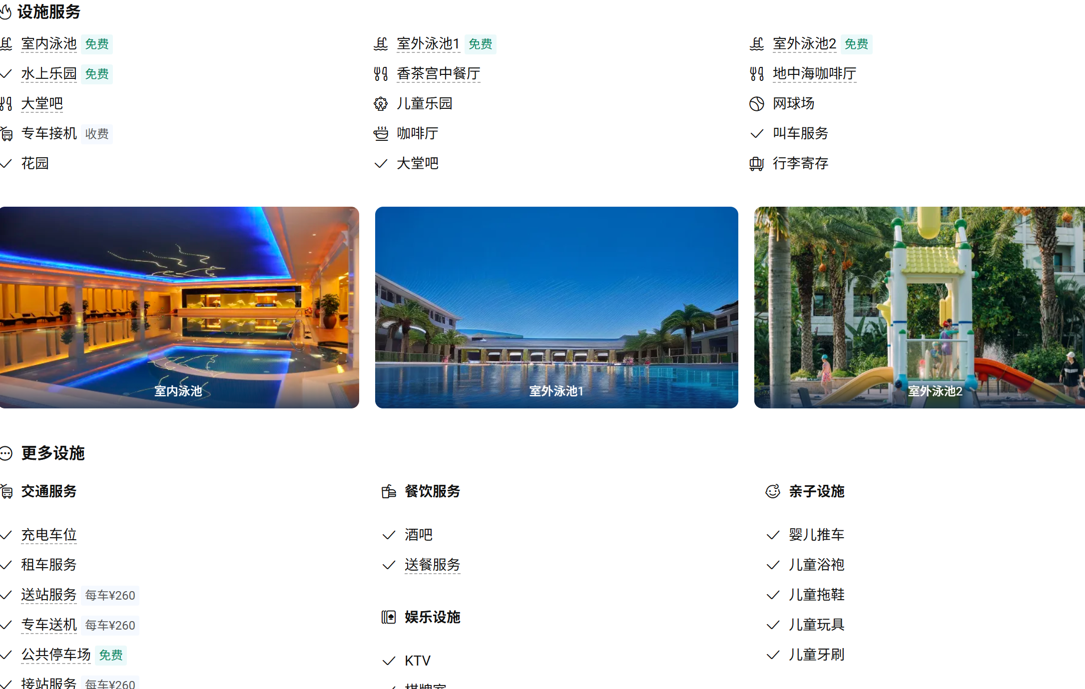 客服WIFI免费 亲子酒店 无烟楼层 电梯 电梯 公共停车场 大团体会议 室内泳池 室外泳池 叫车服务 行李寄存 会议室 儿童泳池 水上乐园 室外泳池 快递服务 儿童乐园 24小时前台 多功能厅 洗衣房 干洗服务 商务中心 提供轮椅 洗衣服务 洗衣房 干洗服务 传真/复印 多媒体演示系统 礼宾服务 叫醒服务 礼宾服务0条点评 100%满意思明区环岛南路3999号¥700起 -