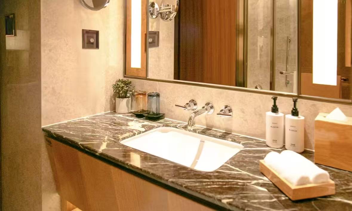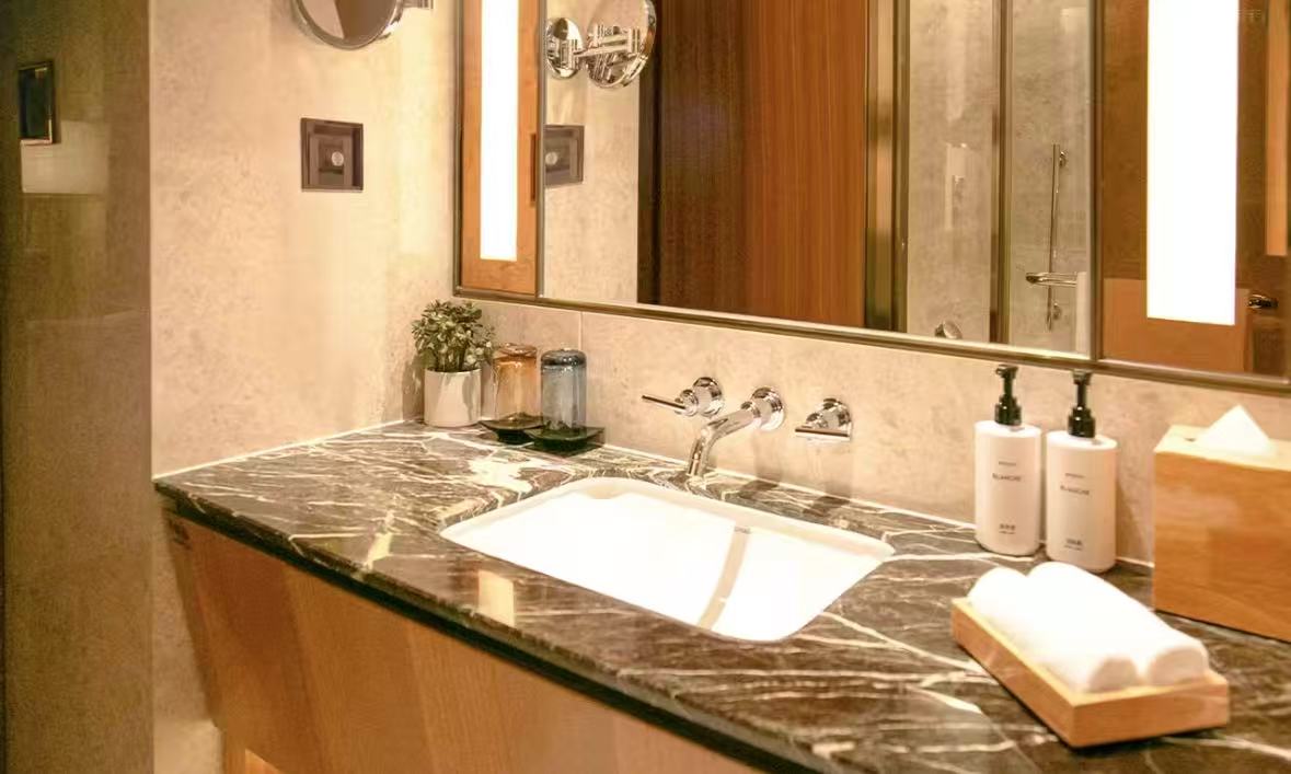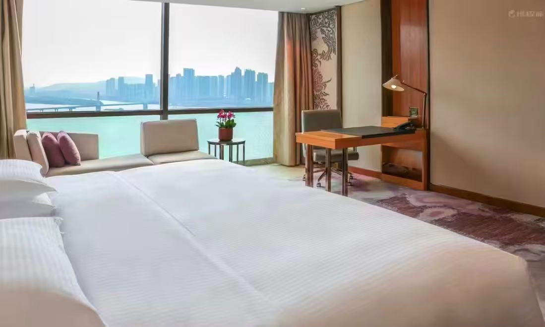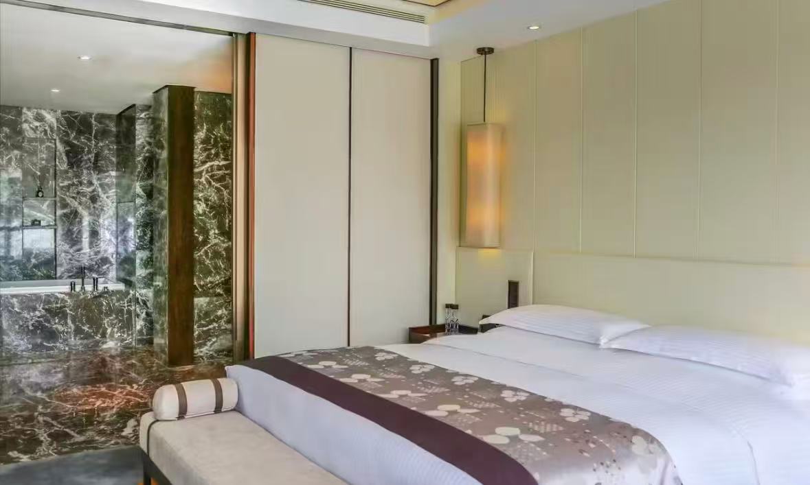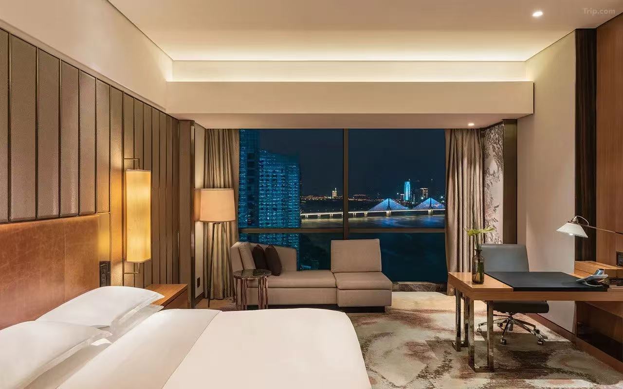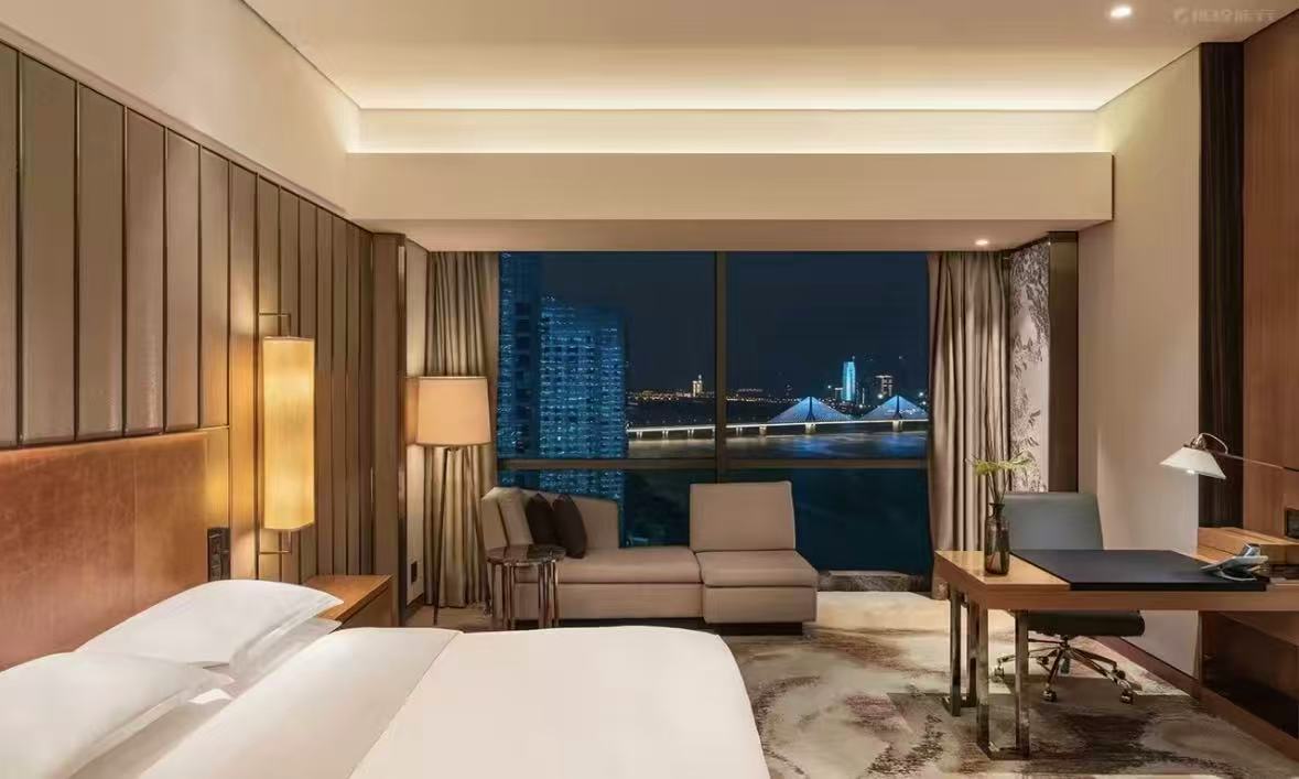 • 卫浴与舒适设施:卫生间采用干湿分离设计,大概率配备独立淋浴间、豪华浴缸及品牌洗浴用品,部分或含双台盆、智能马桶等进阶配置;室内可能融入湖湘文化元素与现代设计风格,延续酒店整体典雅质感。