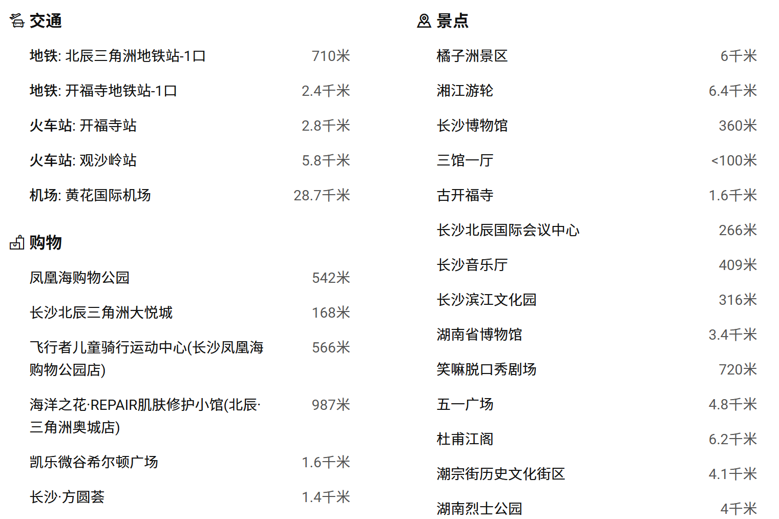 • 核心优势在于“花园景观”,通过户外庭院或露台可直面绿意景致,同时依托酒店位于湘江与浏阳河交汇处的地理优势,部分角度或可兼顾江景元素,实现自然绿意与江河风光的双重享受,营造闹中取静的氛围。