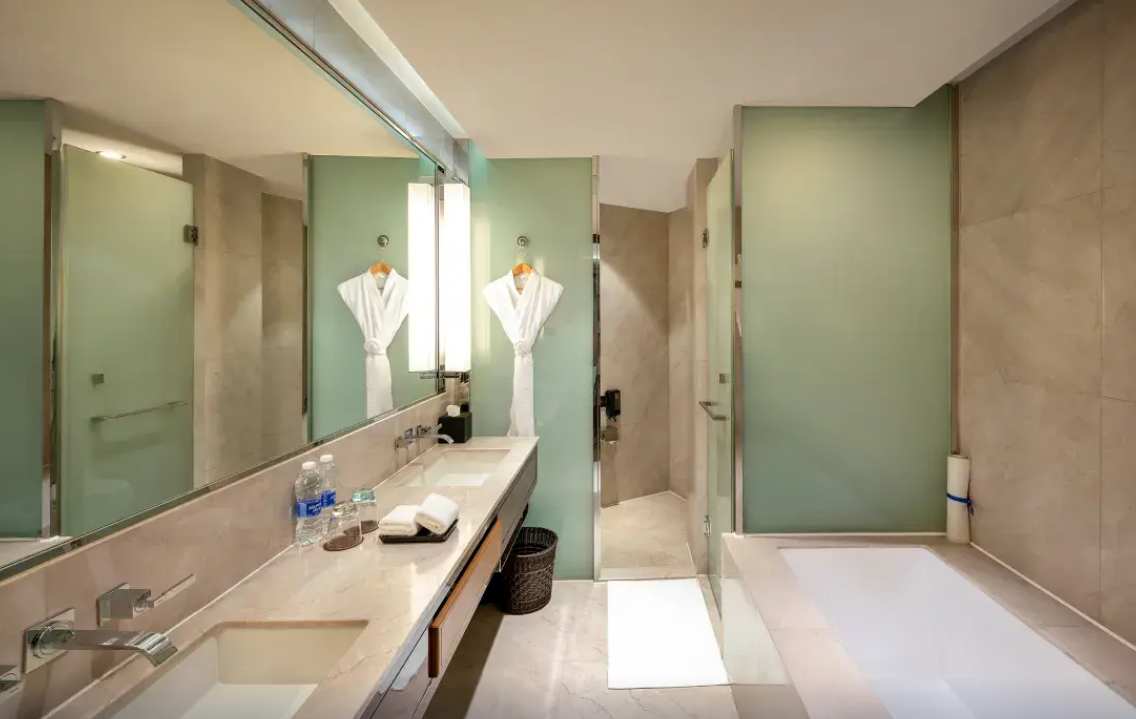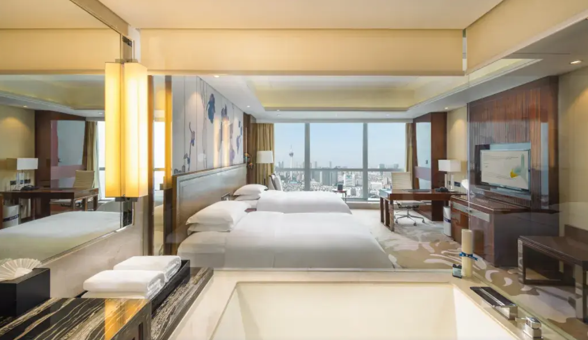 高空客房与设施使用:酒店高空客房(33 层以上)视野好,但部分房型落地窗玻璃可能反光,若想拍城市景观,可选择光线柔和的时段(如傍晚);客房内浴缸使用前建议简单冲洗,部分亲子房含滑梯等儿童设施,需提醒孩子注意安全;恒温泳池、健身房位于特定楼层,使用前可确认开放时间(一般为 6:00-22:00),泳池需自带泳衣或现场购买。