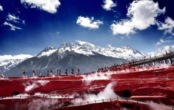 早餐后,乘车前往【翡翠博物馆综合店】俗话说“不赏翡翠枉来云南”,云南宝玉石资源储量大、品种丰富,是业内人士公认的“翡翠之乡”。之后前往玉龙雪山景区,抵达景区游览具有“东方瑞士“之称的【玉龙雪山风景区】,乘海拔4506米的【冰川大索道】游玉龙雪山,从海拔3000米的草甸出发,穿越高大的松杉树林,远眺纳西圣山,欣赏雄奇壮丽的玉龙雪山。游“小九寨”【蓝月谷】(温馨提示:游览约1小时,含电瓶),蓝月谷是条幽深的河谷。 冰雪从峰巅融化流淌而下,一落千丈,遇陡崖成瀑,过浅滩成溪,穿林过岩,清清澈澈地欢跳在人们面前)。回到玉龙雪山海拔3100米处,国际大导张艺谋导力作即将启幕,以雪山主峰为幕景的实景大型民族歌舞《印象丽江》雪山篇将在天地之间体验纯原生态演出(观赏时间60分钟)。