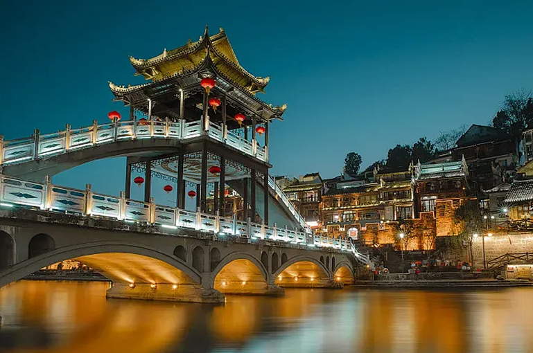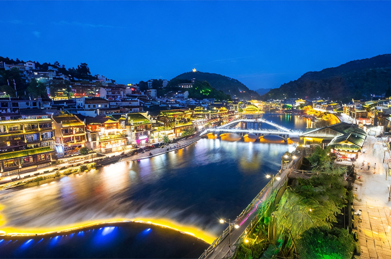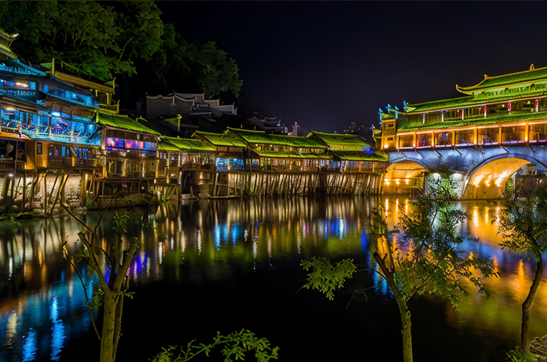 下午乘车赴湘西,游览挂在瀑布上的土家第一镇-【芙蓉镇】(电瓶车28元/人自理),该镇美誉为:“中国历史文化名镇”、“挂在瀑布上的千年古镇”、“中国十大美丽乡镇之一”“土家之源、土家之都”、“最朴实最美妙的影视拍摄基地”,后赴凤凰入住酒店,可自由欣赏凤凰夜景。