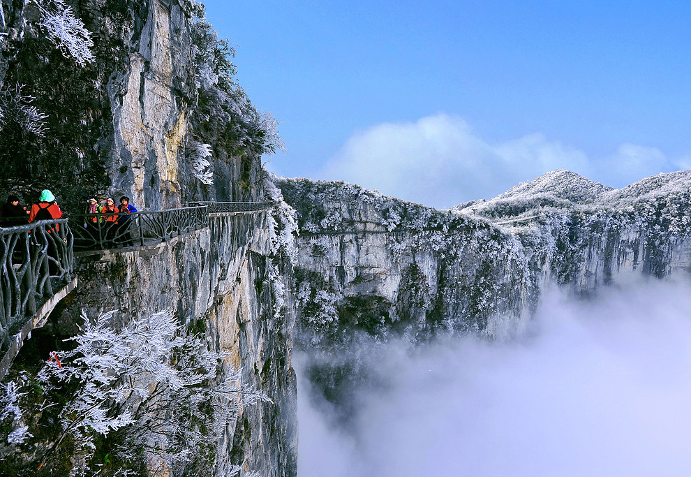 挑战天门山玻璃栈道,体验走在云端的感觉。