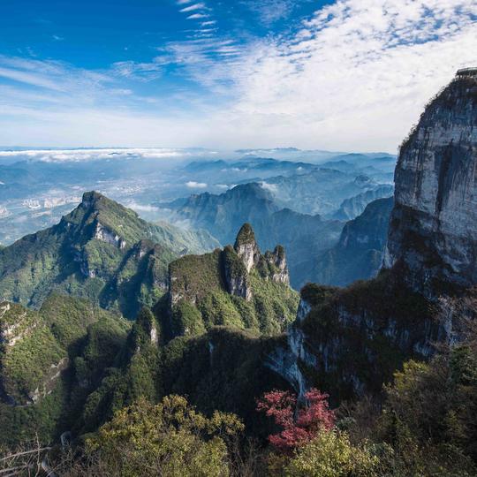 登顶天门山最高峰,体验“云生脚下、奇峰尽览、万象目中”的豪迈感觉。在山顶欣赏壮观的天际线,拍照留念。