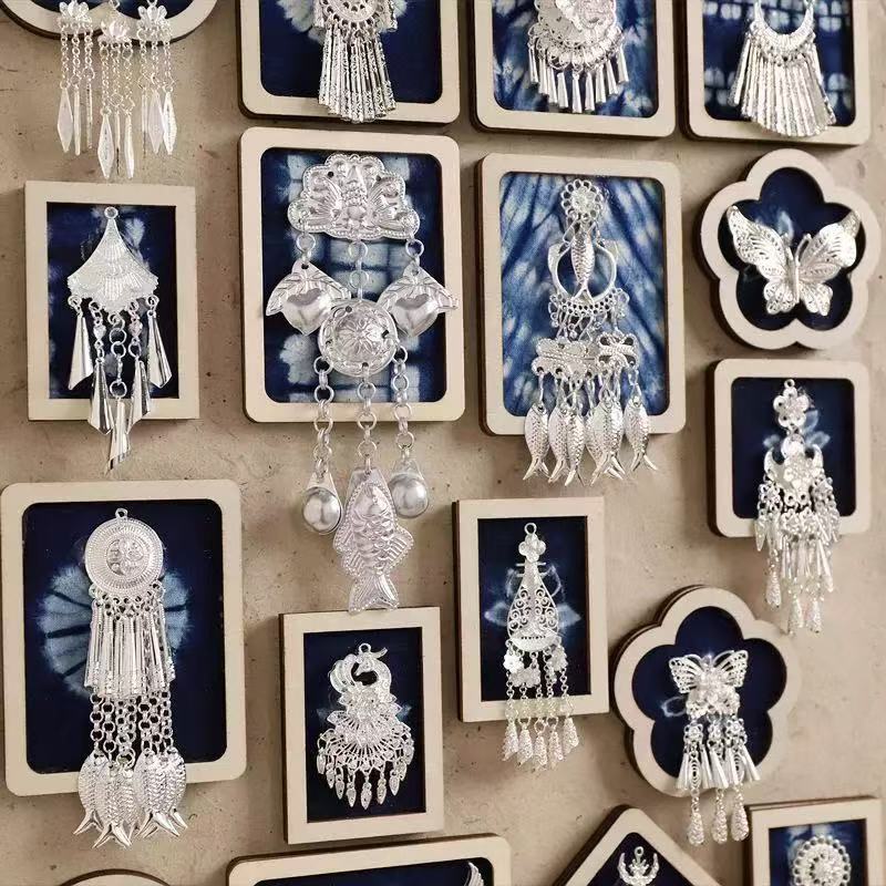 • 款式多样:市面上的扎染苗银文创冰箱贴有多种款式,如“花丝牛角”“孔雀舞”“银蝴蝶”“苗寨风铃”等,不同款式在图案、造型上各有特色,有的还搭配了流苏等元素,增添了灵动之感。
