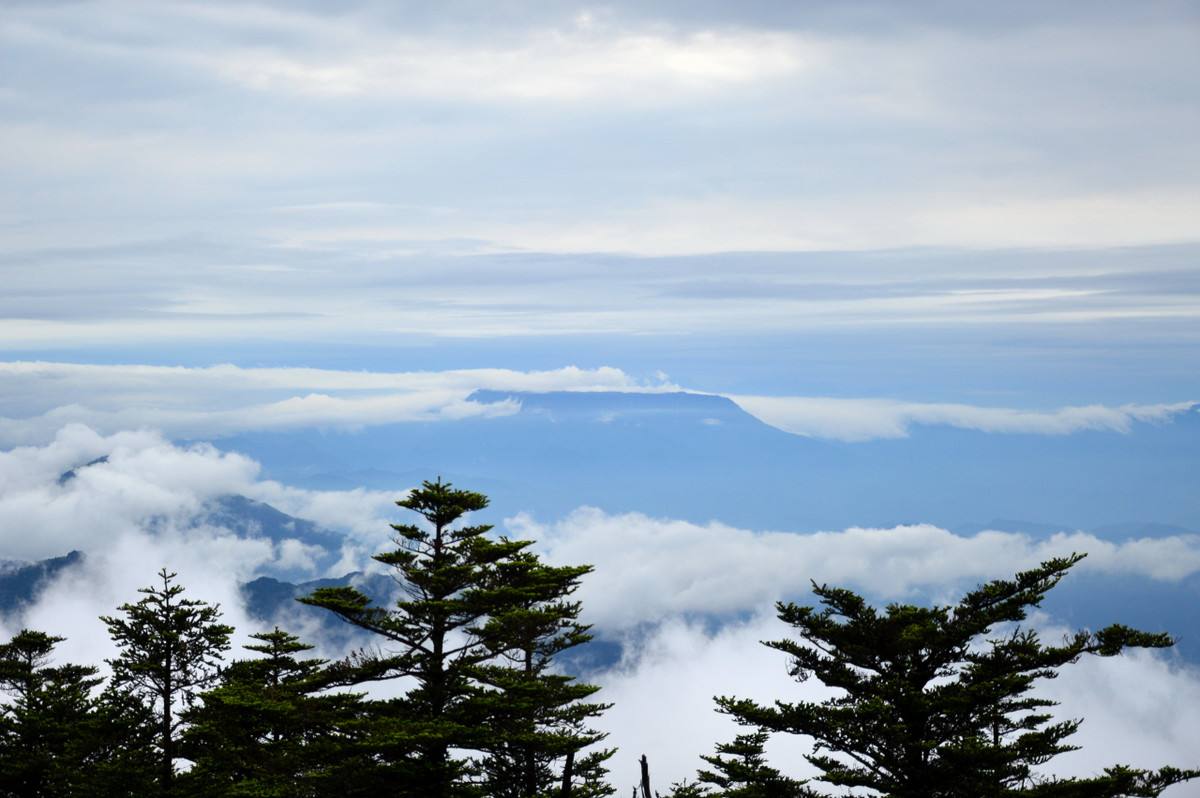 峨眉山山区云雾多,日照少,雨量充沛。平原部分属亚热带湿润季风气候,一月平均气温约6.9度,七月平均气温26.1度;因峨眉山海拔较高而坡度较大,气候带垂直分布明显,海拔1500米~2100米属暖温带气候;海拔2100米~2500米属中温带气候;海拔2500米以上属亚寒带气候。海拔2000米以上地区,约有半年为冰雪覆盖,时间为10月到次年4月。