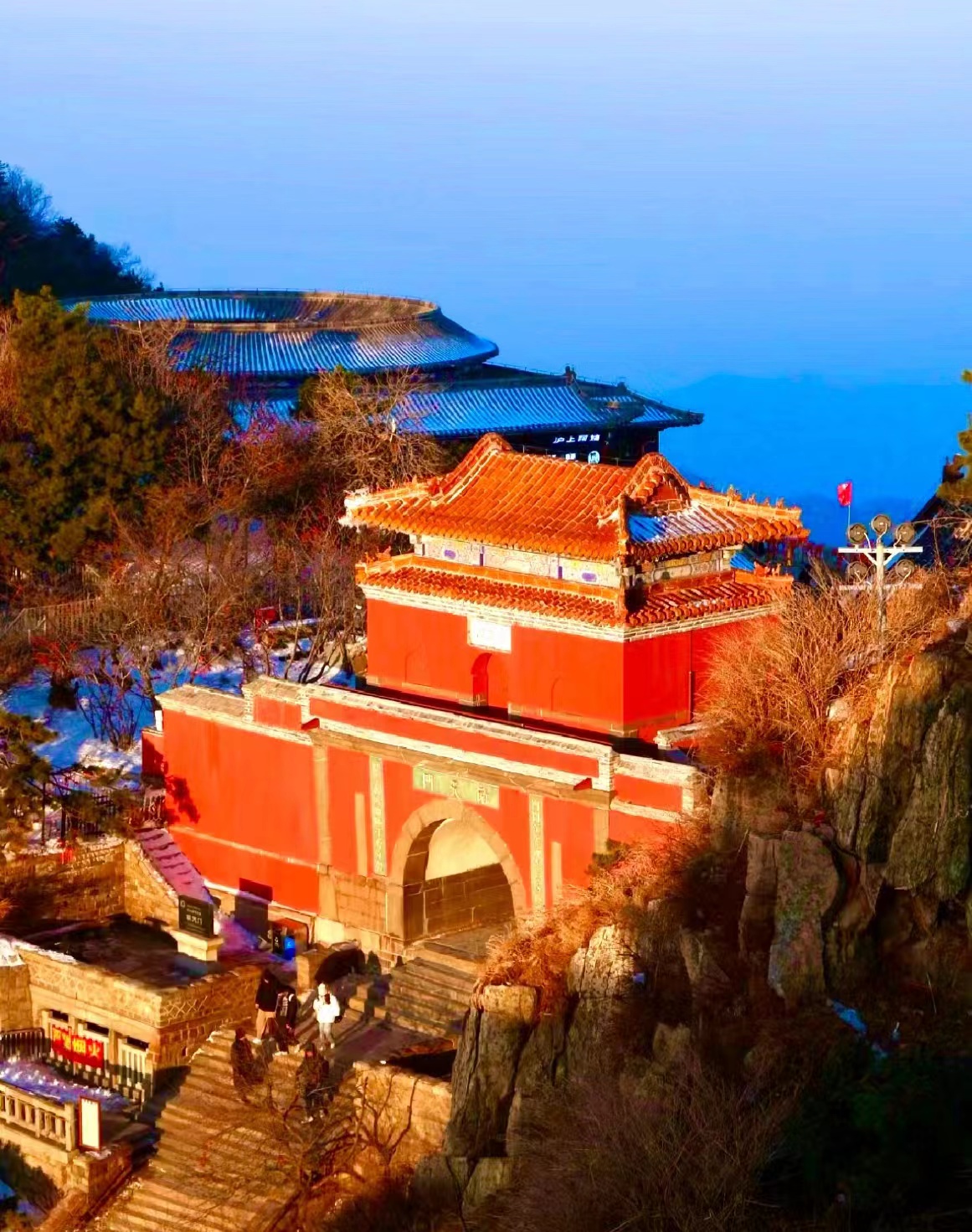 位于泰山极顶南侧,是泰山女神碧霞元君的祠庙,香火旺盛,游客众多。