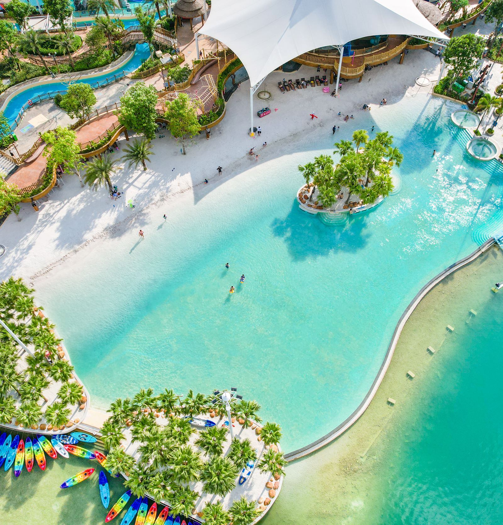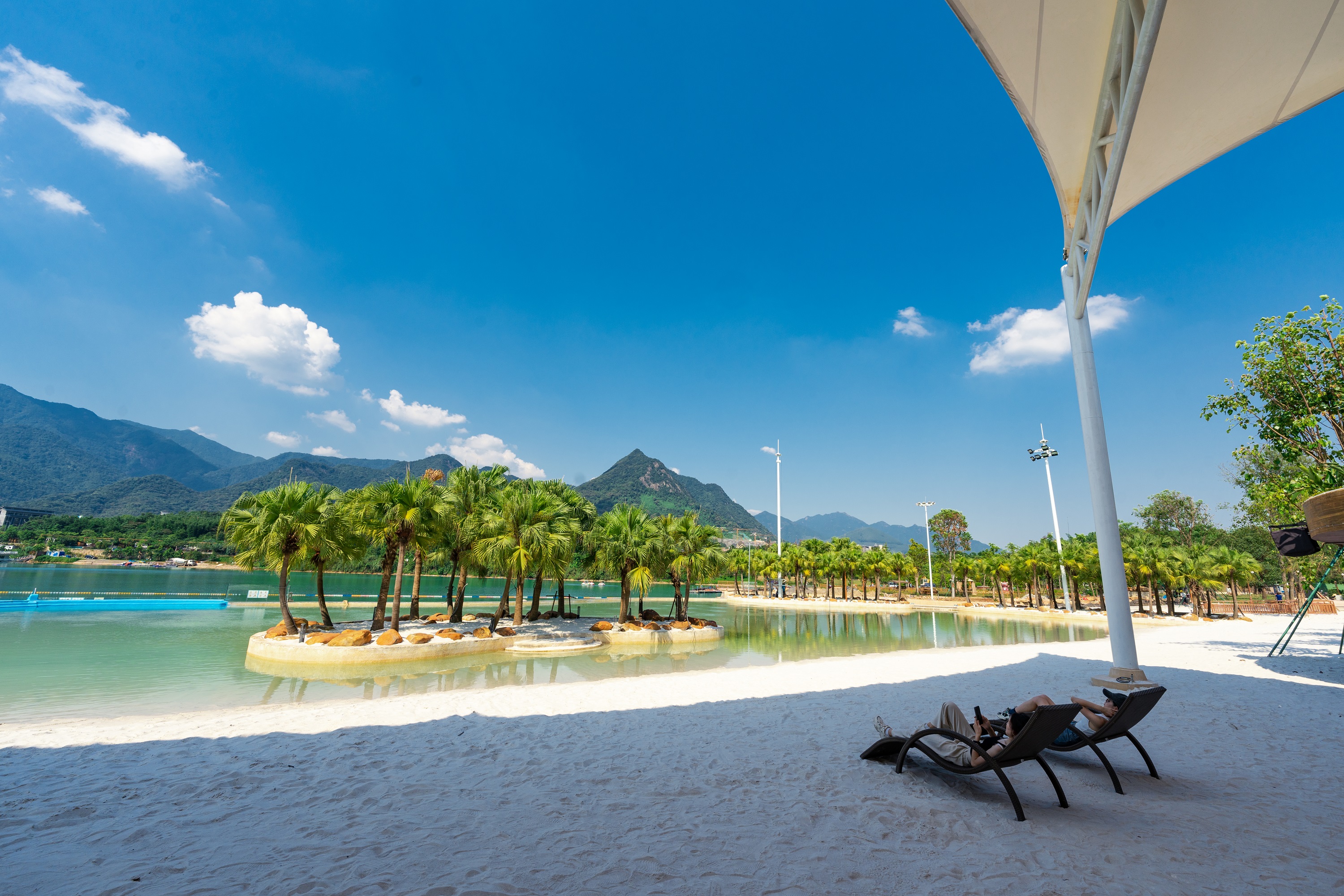 【神秘海岛区】:神秘海岛区有号称广州mini版“马尔代夫”的椰林白沙滩和超大无边际泳池。葱郁翠绿的棕榈树、SUP板配上蓝天白云,仿佛自带滤镜,秋冬日,阳光沙滩,沙滩椅一躺真的超级舒适,大小朋友都适合的玩水圣地,临近天阳湖,打卡拍照的不二之选,随手一拍都是大片,玩累了还可以舒舒服服的晒日光浴。超大无边际泳池,冬季想挑战冬泳的朋友可以前往此处游泳哦。