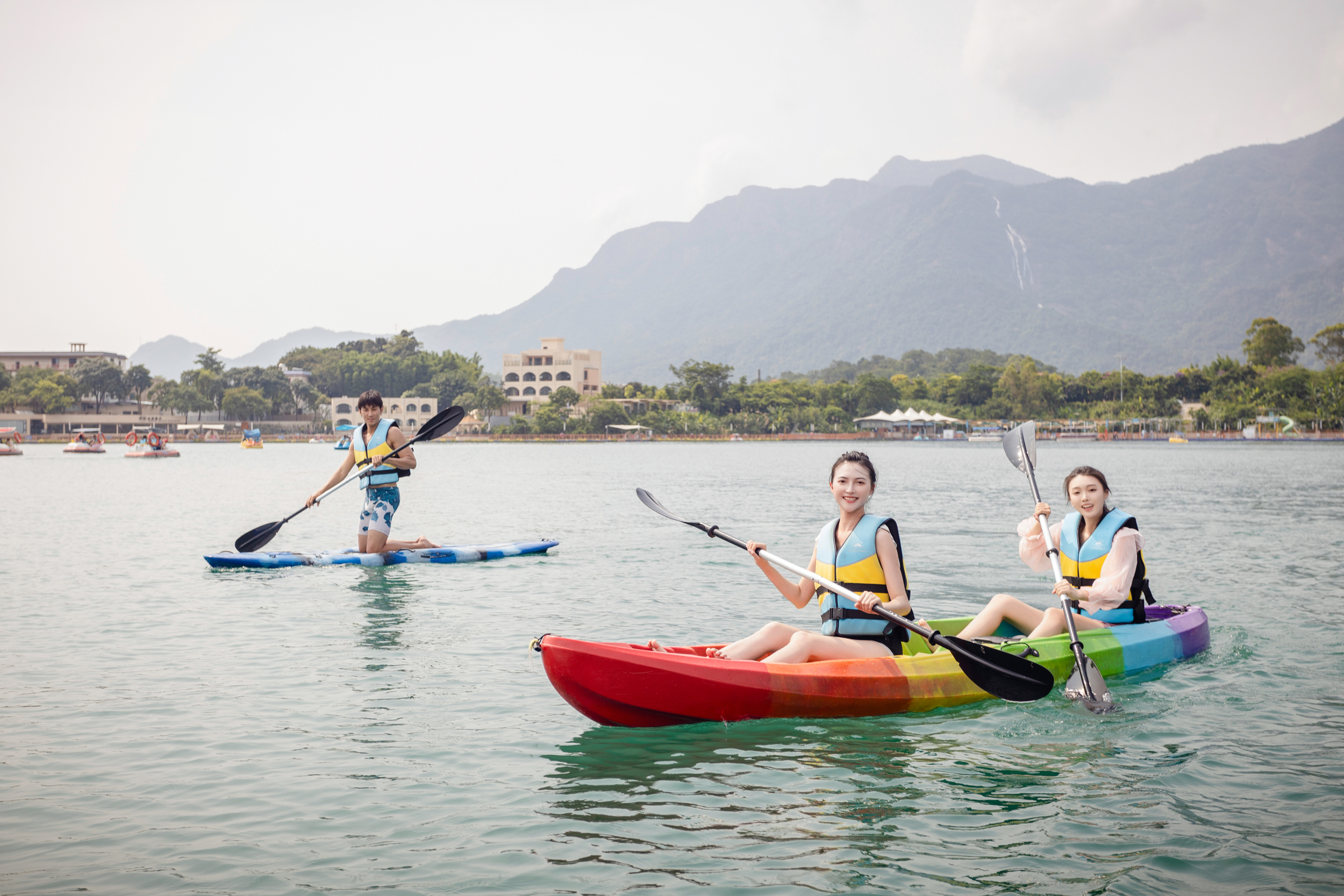 【天阳湖区】:约13万㎡的天然矿物湖,终年碧蓝澄澈,湖面宛如翡翠。能近距离欣赏微观版的“水中动物园”带上鱼料与鱼群为友欢乐互动。湖中设有游船、电动碰碰船、皮划艇等精彩的水上休闲运动项目,不限次不限时,让你一次性体验多样户外游湖运动。