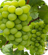 果肉鲜脆多汁、味道香甜,带有玫瑰香味,是高品质的鲜食葡萄。外观上果粒为黄绿色,果粒较大且较为均匀。