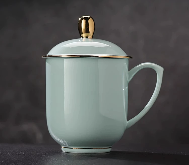 景德镇陶瓷影青纯色带盖马克杯,精选优质瓷土,经匠心工艺烧制而成。杯身采用经典影青釉色,如春日湖面般温润雅致,纯净的色调尽显简约高级感。搭配精致带盖设计,既防尘卫生,又能更好地保温锁香,无论是冲泡咖啡、茶饮,都能为你带来惬意的时光。杯身线条流畅,握感舒适,底部与盖顶的描金细节,更添轻奢质感,是日常使用与家居装饰的绝佳之选,承载着景德镇陶瓷的千年工艺与独特美学。