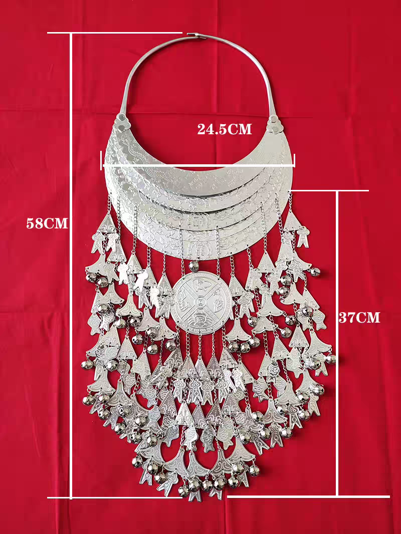 黎族银饰极富象形之关,喜欢用不同的纹饰反映不同的生产生活情况。黎族银饰的纹饰内容极其丰富,大都体现吉祥的寓意,如凤尾纹饰象征和谐、幸福,云纹、龙纹代表喜庆,缠枝纹寄意团结。