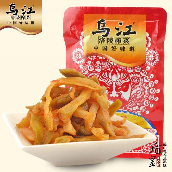 品质特点: 鲜嫩香脆、鲜香可口,重庆市涪陵区特产,中国国家地理标志产品。涪陵榨菜选用涪陵特有的青菜头,经独特的加工工艺制成的鲜嫩香脆的风味产品。与法国酸黄瓜、德国甜酸甘蓝并称世界三大名腌菜,也是中国对外出口的三大名菜(榨菜、薇菜、竹笋)之一。