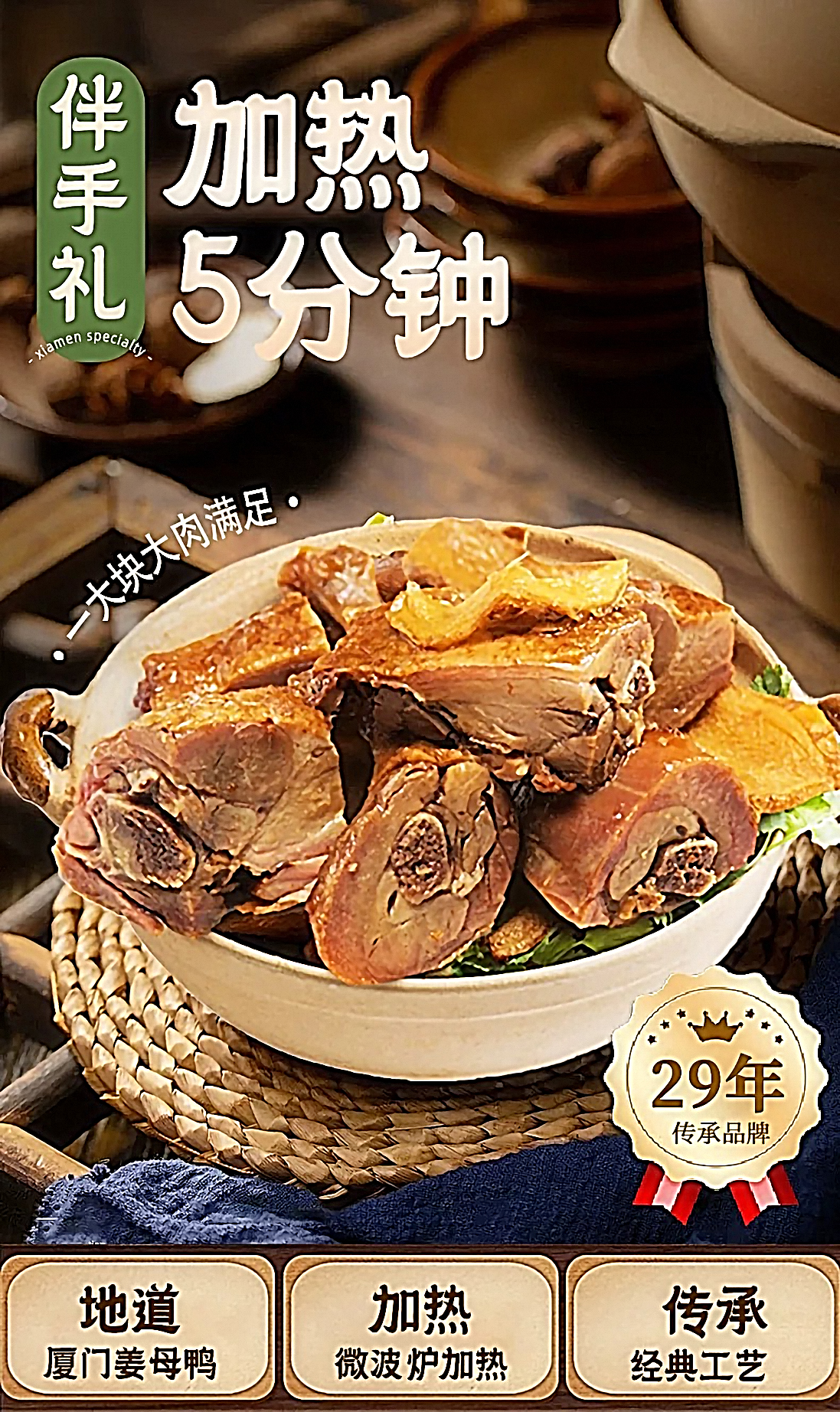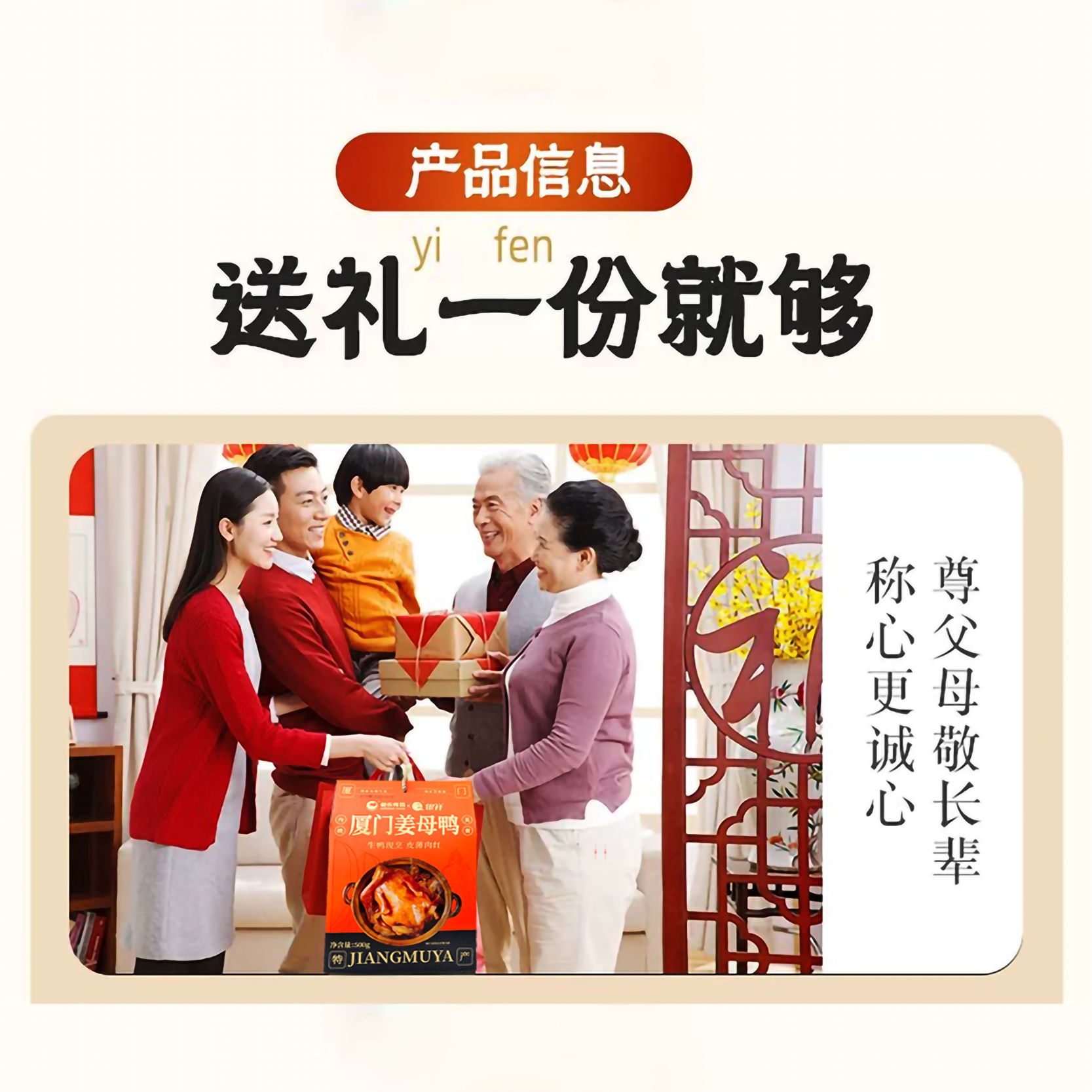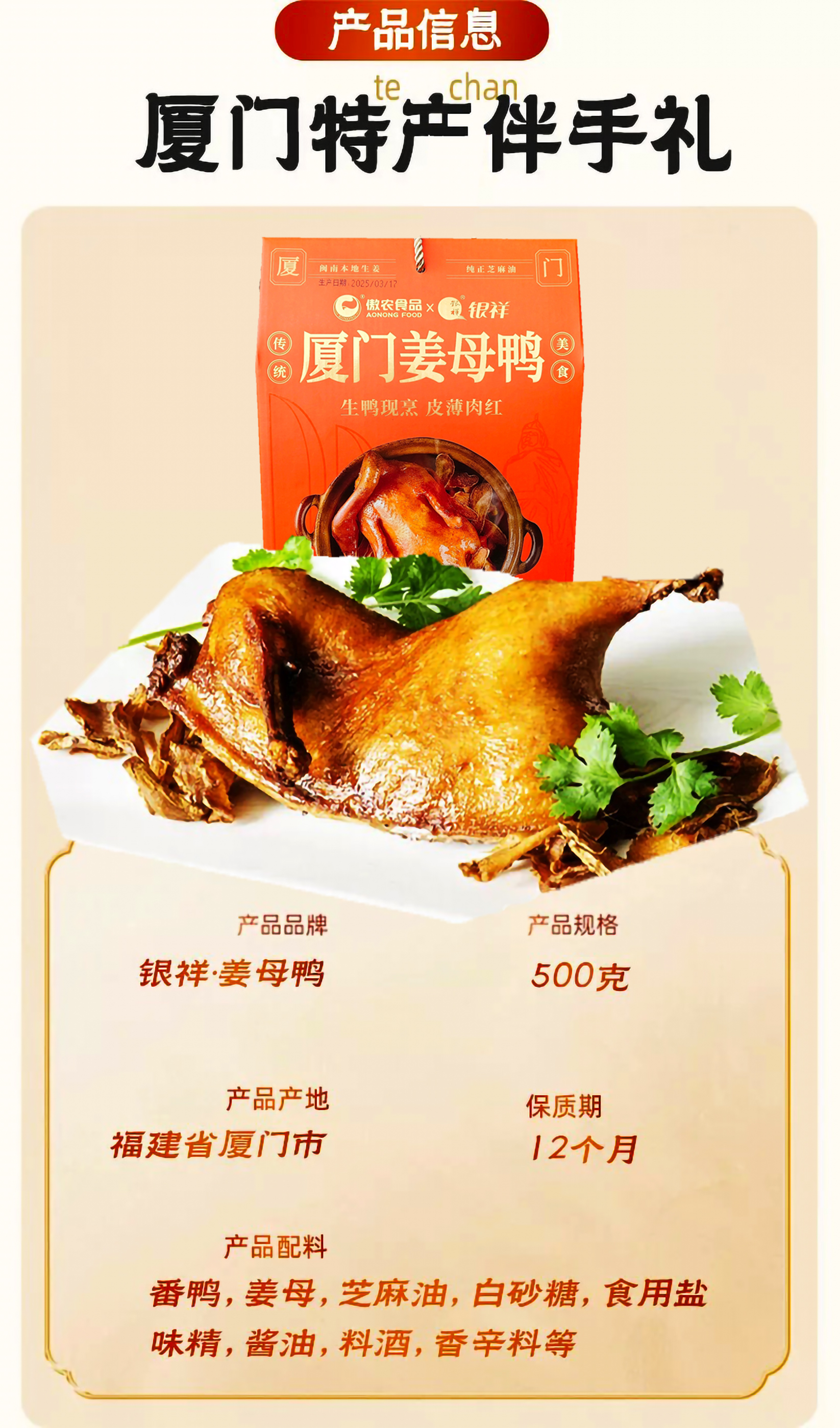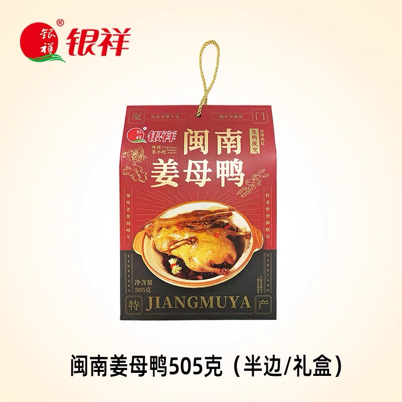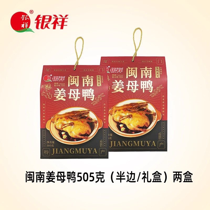 【新品款】姜母鸭500g(半只装) 【推荐款】姜母鸭500g*2盒 【小份量款】姜母鸭200g*4盒(送礼袋) 【厦门地标插画】沙茶面545g+姜母鸭400g(送礼袋) 【经典款】银祥姜母鸭500g*2盒(送礼袋) 【经典款】银祥姜母鸭500g*1盒(半只装) 【厦门地标插画】沙茶面545g*2盒+姜母鸭400g*2盒(送礼袋) 【线下同款】臻品姜母鸭礼盒800g 【厦门地标插画】来自厦门的礼908g 【线下同款】厦门美食三宝礼盒1170g 【经典款】姜母鸭500g*2袋(送礼袋) 【经典款】姜母鸭500g(半只装) 【送礼款】同安封肉400g*2盒(送礼袋) 【经典混合款】姜母鸭500g+同安封肉400g 【厦门地标插画】面线糊660g+姜母鸭400g(送礼袋) 【厦门地标插画】面线糊660g+沙茶面545g(送礼袋) 【厦门地标插画】面线糊+姜母鸭+沙茶面 【厦门地标插画】姜母鸭2盒+面线糊2盒 【厦门地标插画】沙茶面2盒+面线糊2盒 银祥御品家厨礼盒1600g