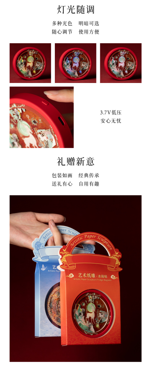 非遗纸雕灯-飞天莲花藻井,敦煌纸雕灯冰箱贴-鹿王本生,都督夫人,反弹琵琶,敦煌神龙,反弹琵琶(方版),华盖藻井(方版)),天人飞仙(方版),菩萨彩塑(方版),九色鹿))