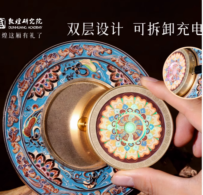 敦煌研究院金属旋转纸雕灯可发光冰箱贴亮灯光藻井博物馆文创磁贴