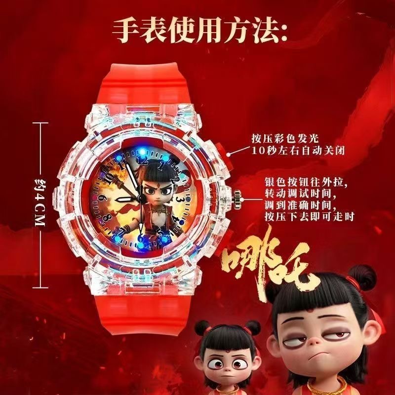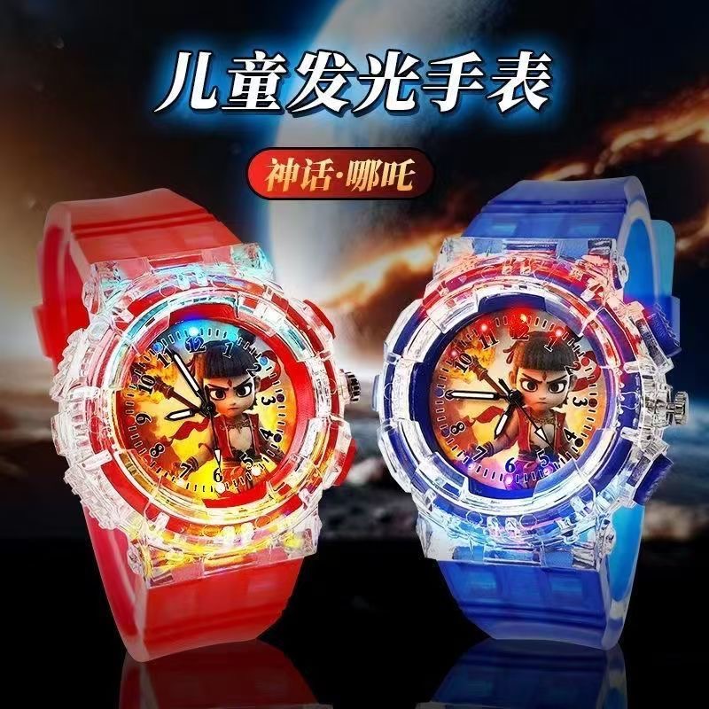 新款七彩闪灯魔童哪吒闹海敖丙儿童卡通手表男孩小学生发光手表