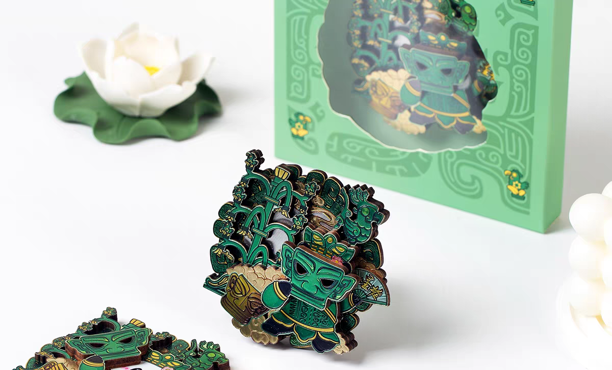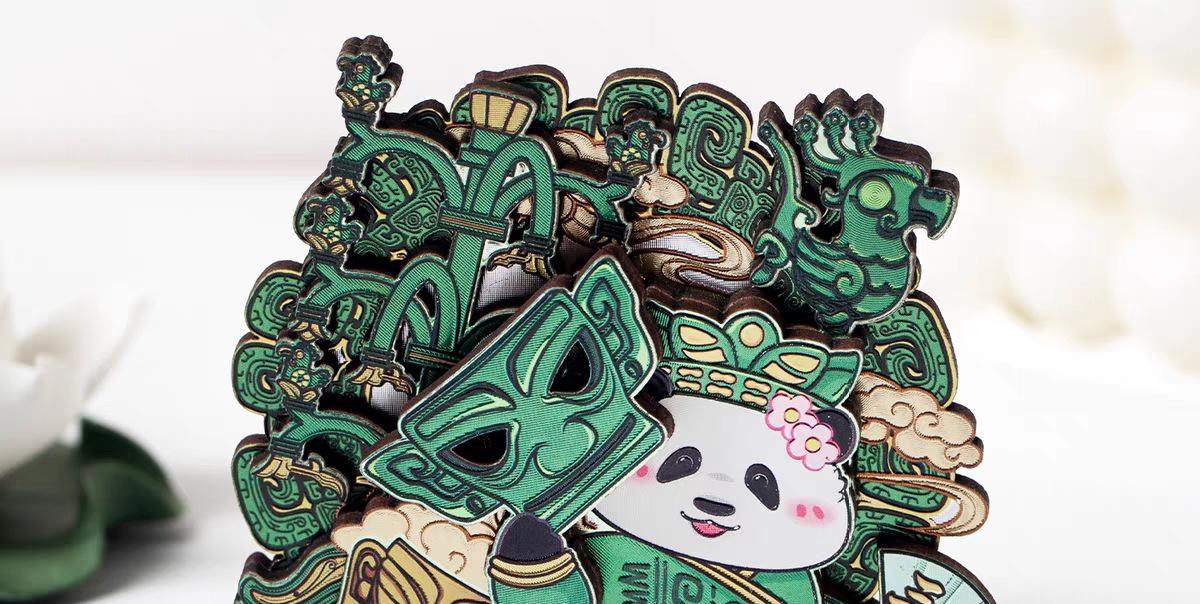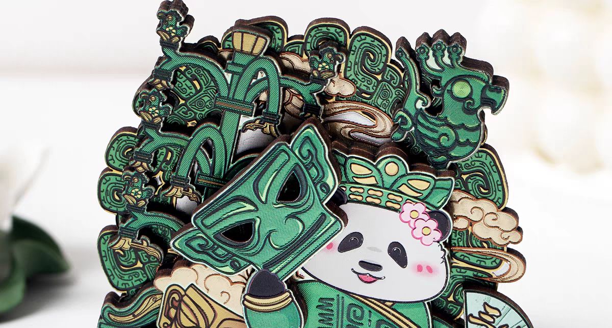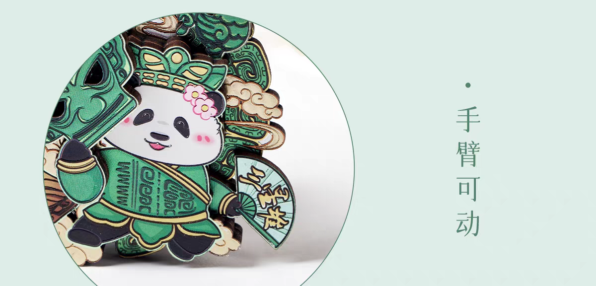 > 熊猫冰箱贴三星堆成都文创正版纪念品周边木质多层动态磁贴伴手礼