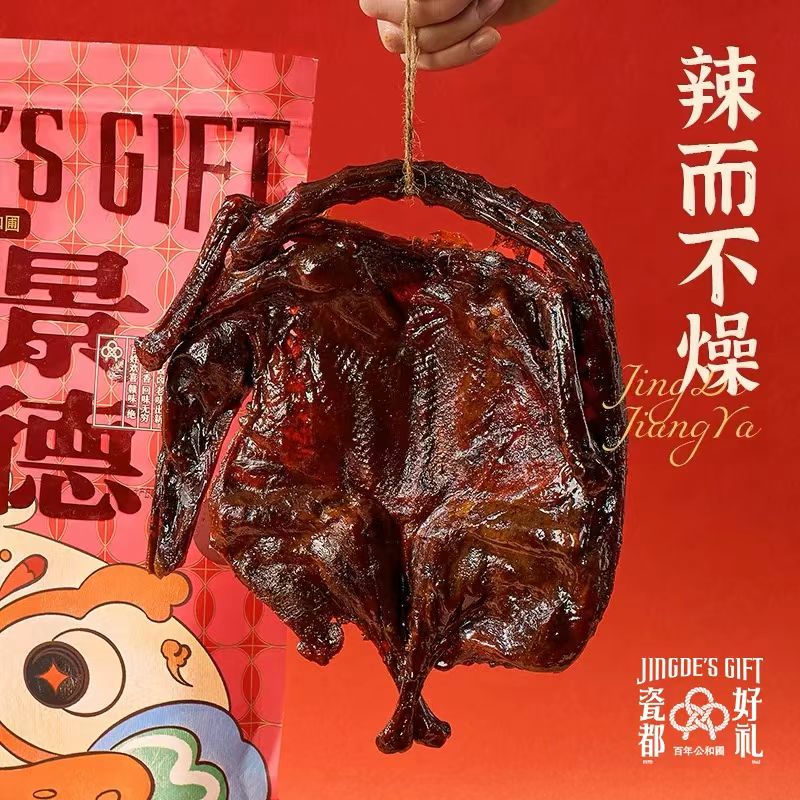 - 制作工艺:选用江西本地“红毛鸭”,经过宰杀、预处理后,先进行干腌,用飘香粉均匀涂抹鸭腔,压重物腌制12小时,再进行湿腌,将鸭胚放入由高粱酒、盐焗鸡粉等调制的腌制液中,4℃冷藏24小时,每6小时翻面一次。之后进行分段烘烤脱水,最后放入用猪骨、鸡架等熬制的卤汤中酱制,小火煨40分钟后关火焖30分钟,出锅前刷麦芽糖+红醋混合脆皮水。