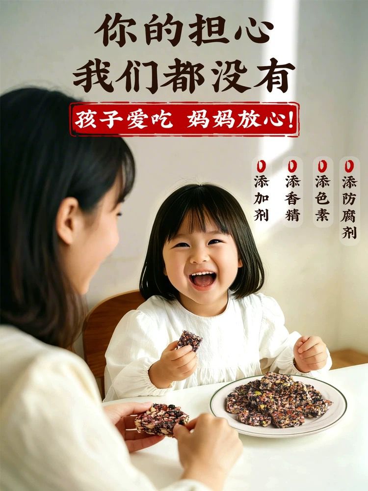 这款能量棒以“食养+便捷”为核心,精选五黑食材与坚果、果干,经低温烘焙锁住营养,避免传统养生食品的苦涩感。每100g含12g蛋白质、8g膳食纤维,营养密度远超普通零食,且靠天然食材调甜,微甜不齁。