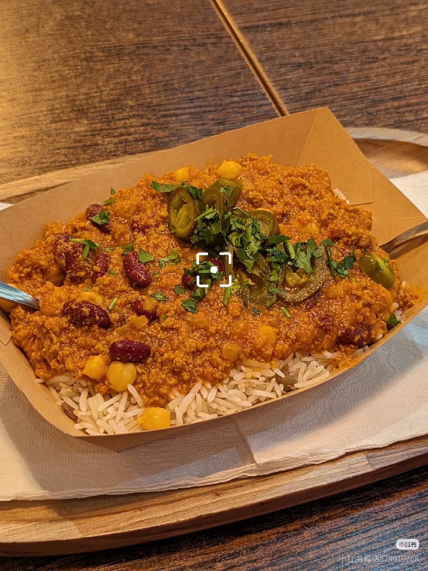 库莎丽口感丰富,米粒与通心粉缠绵交织,鹰嘴豆软糯,炸洋葱金黄酥脆,为整道菜提香,而番茄酱则酸香浓郁,能化解炸洋葱的油腻,让每一口都浸染着独特的风味,酸辣可口,滑滑糯糯。