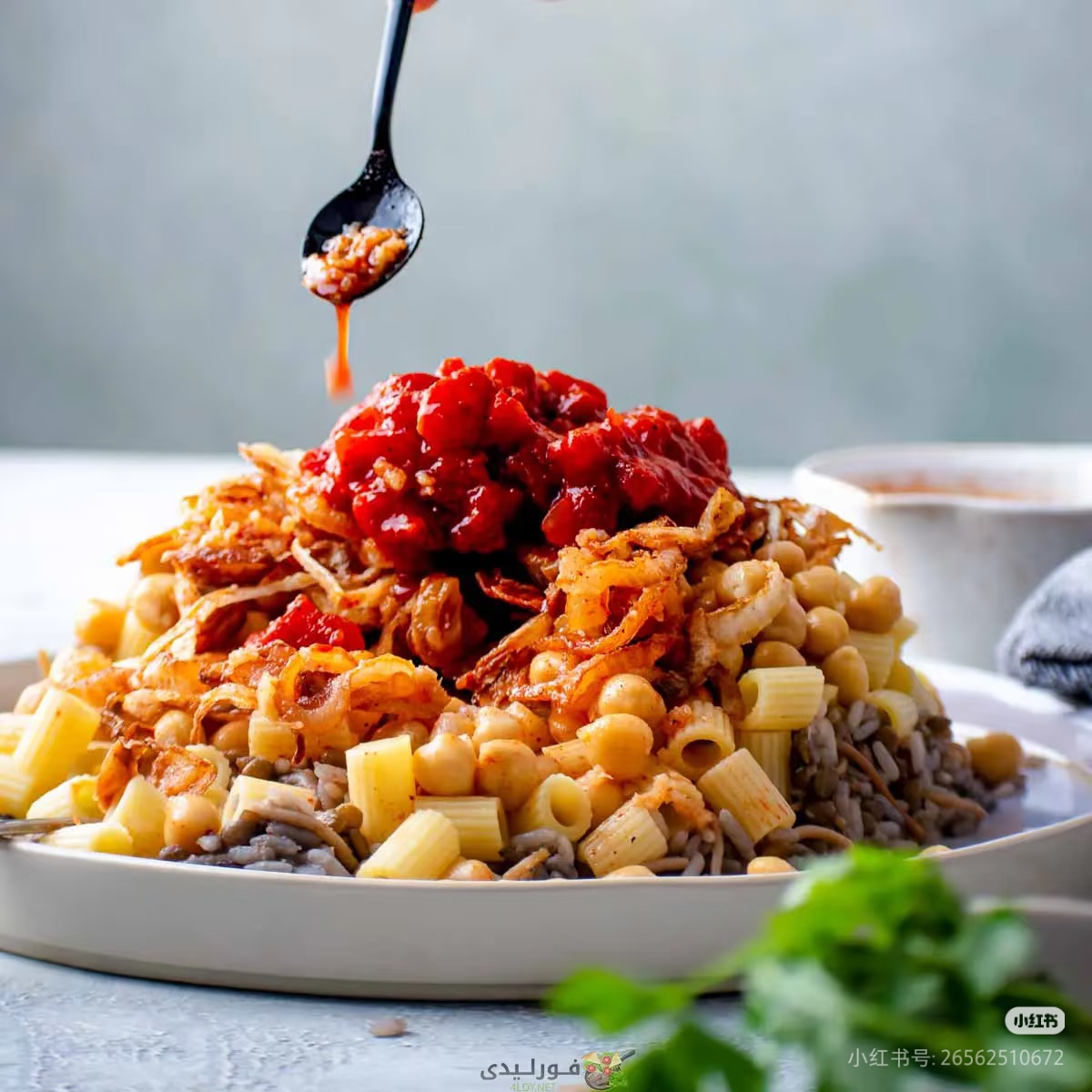 库莎丽(Kushari)是埃及的“国菜”,也是极具代表性的平民美食。以下是其详细介绍: