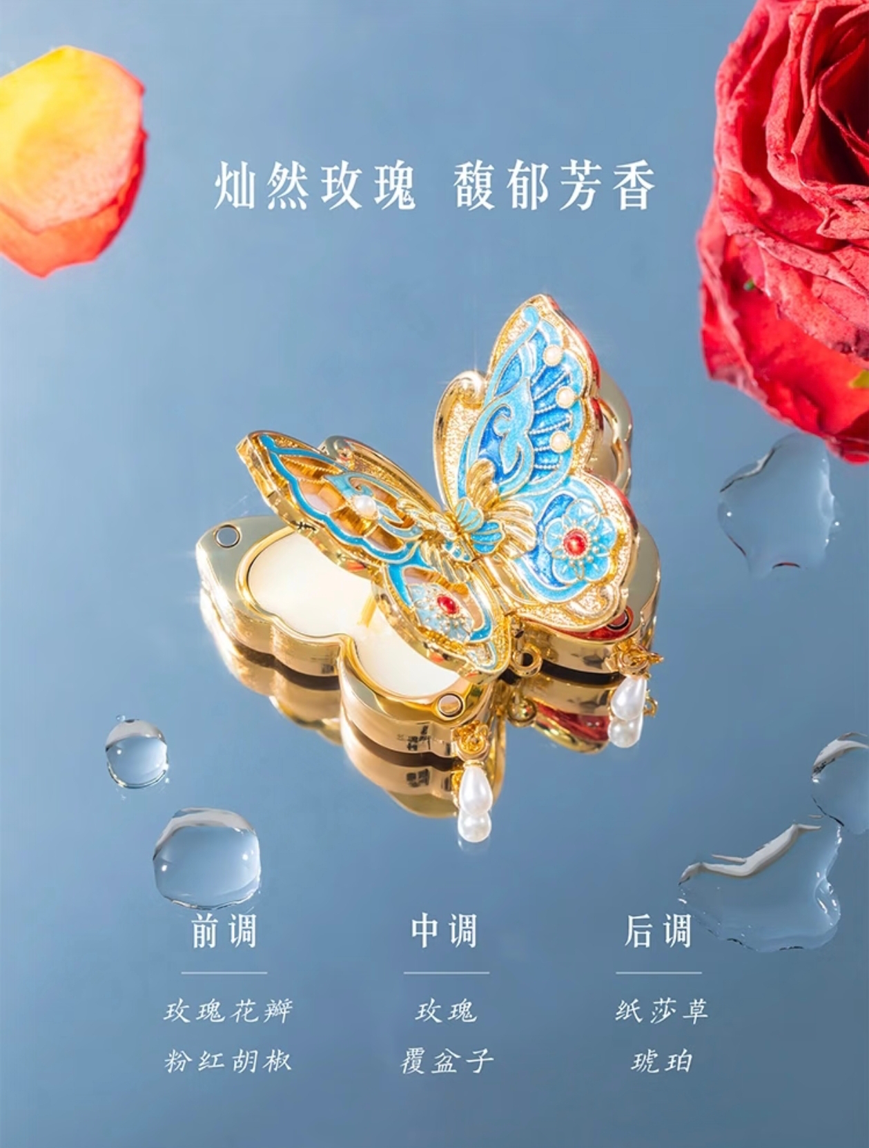 - 香调香味:属于玫瑰香调,前调是玫瑰花瓣与粉红胡椒的清甜,中调混合了玫瑰与覆盆子的酸甜,后调则是纸莎草与琥珀的温柔余韵,香气含蓄清幽。