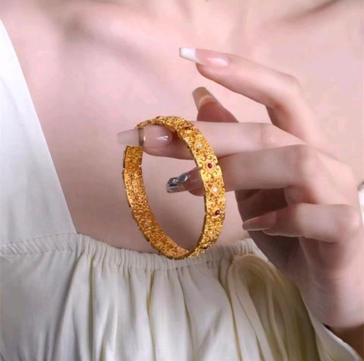 足金999+卢浮宫灵感+古法镂空,融东西方美学,质感温润,自用送礼皆佳。