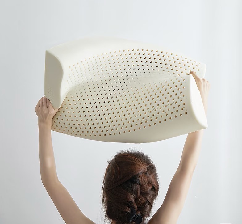 泰国乳胶枕是一种以天然乳胶为主要原料的寝具,凭借其舒适的体验和良好的性能,受到众多消费者的喜爱。以下是关于它的产品介绍:原料与材质泰国乳胶枕的原料为泰国天然橡胶树汁液,天然乳胶含量通常可达90%以上,整个生产过程多为物理工艺,不添加有害化学物质,无毒无害,且具有良好的环保性,在自然界中可自然降解。产品特点支撑性好:乳胶枕具有高弹性,能根据人体头颈曲线自动调整形状,填补肩颈空隙,无论是仰睡还是侧睡,都能保持颈椎的自然C型曲度,缓解颈椎压力。透气性佳:采用蜂巢式气孔设计,有数千个细小的排气孔,能快速散发人体排出的余热和潮气,保持枕面干爽,即使在炎热的夏季也不会感到闷热。 抑菌防螨:天然乳胶中含有的橡树蛋白等成分,具有抑制细菌、螨虫滋生的能力,能减少因细菌、螨虫引发的皮肤问题和呼吸道疾病,营造健康的睡眠环境。静音抗干扰:乳胶材质具有良好的静音效果,能吸收翻身时产生的摩擦噪音,减少对睡眠的干扰,尤其适合浅眠人群。清洗与保养乳胶枕可手工清洗,清洗时尽量以挤压方式进行,不可放入洗衣机洗涤。洗净后用干毛巾压干水分,避免阳光直射,可在通风处晾干或用电扇吹干。收纳时不要压重物或置于潮湿空间,若使用真空袋收藏,存放时间不要超过六个月。品牌与款式泰国乳胶枕品牌众多,如TAIHI泰嗨推出的玻尿酸天然乳胶枕,在枕套中融入玻尿酸因子,兼具护肤功能。还有LunaBloom推出的卡通动物款乳胶枕,造型可爱,适合儿童及年轻群体。