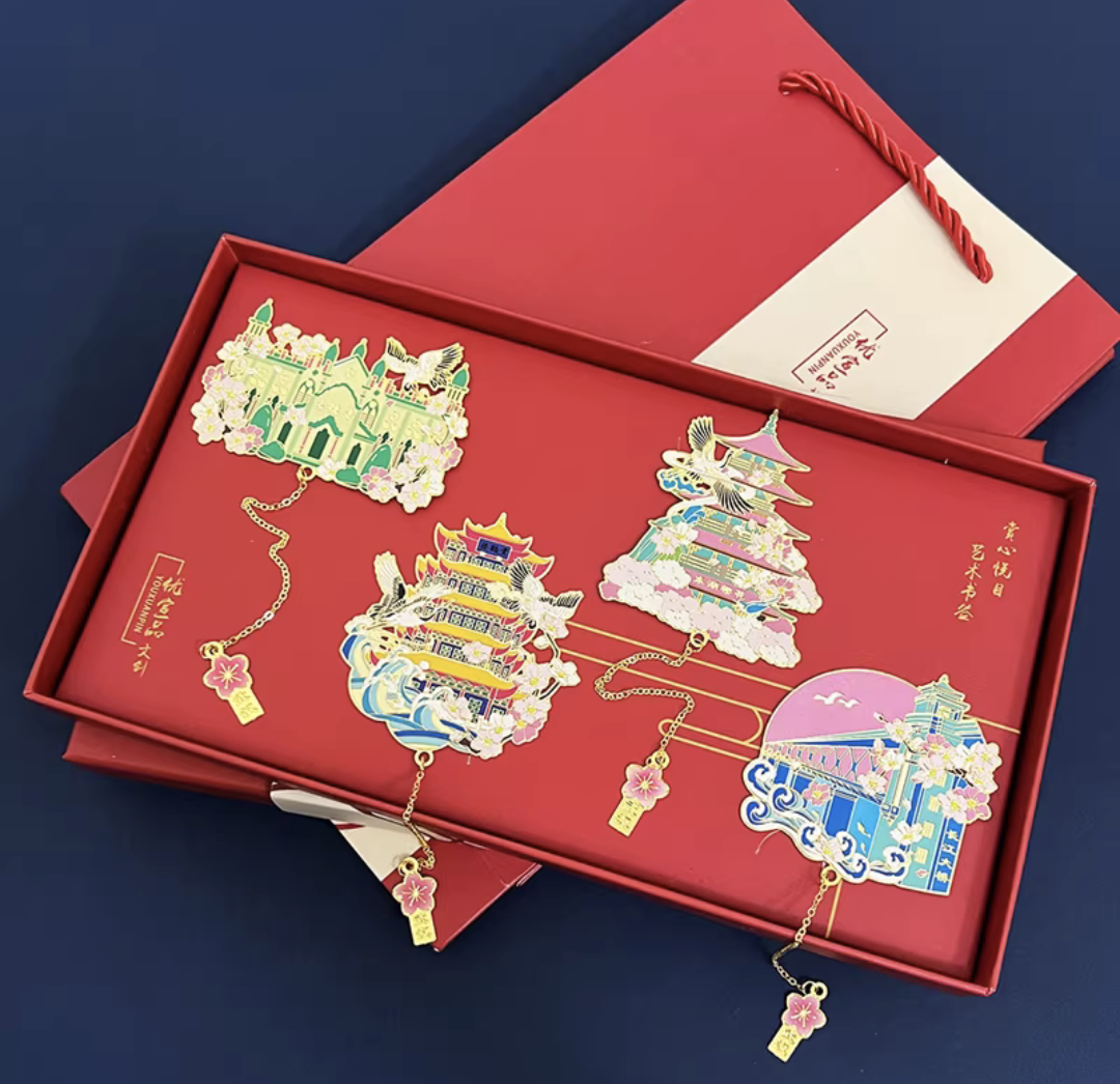> 武汉旅游纪念品黄鹤楼东湖镂空金属书签中国风文创礼品