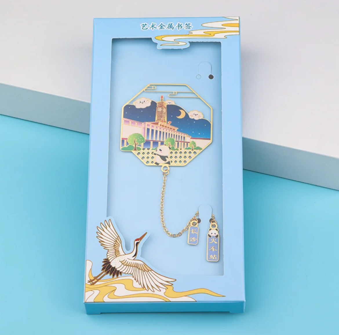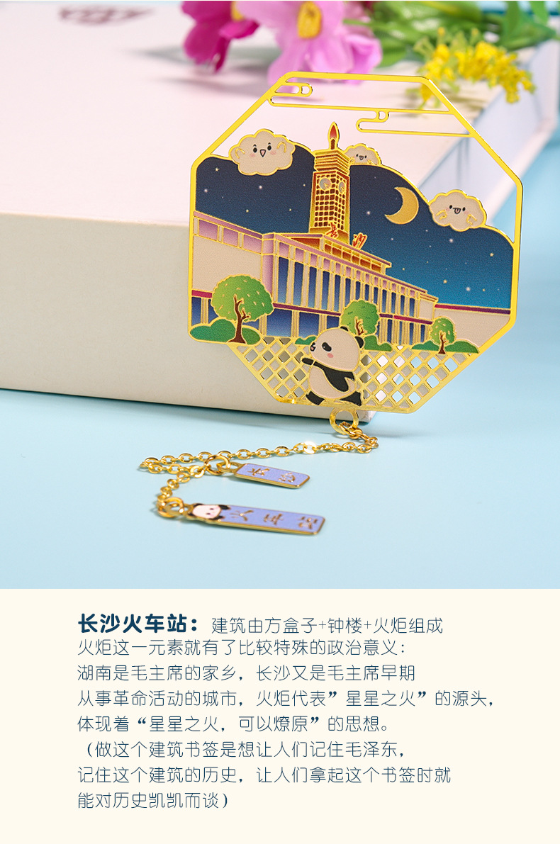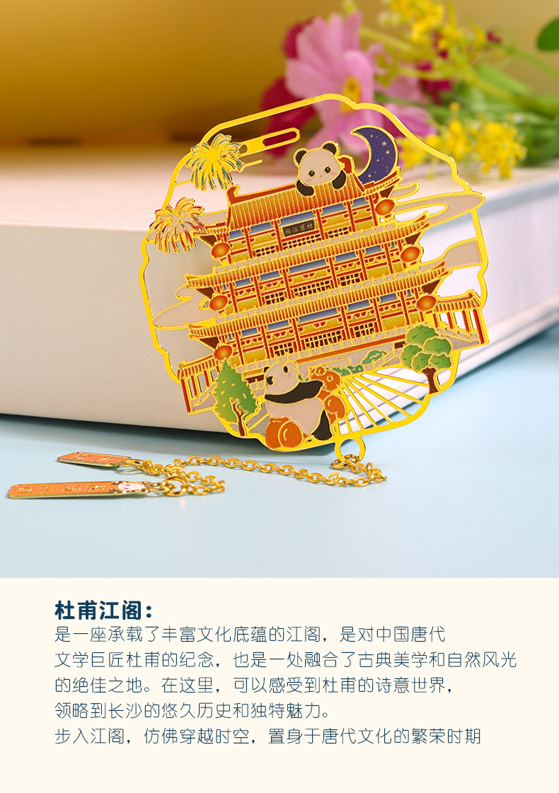 长沙主题中式文创黄铜金属书签旅游文创类文具,采用黄铜材质+国风设计,搭配吊坠装饰,兼具实用性(书签功能)与纪念性(城市文化载体),适合作为旅游伴手礼或文化类礼品;购买享有48小时发货、免运费、7天无理由退换等服务,适配阅读爱好者、文创收藏者等群体。