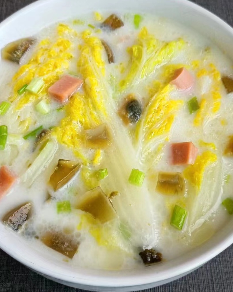 白菜含大量粗纤维,牛奶能促进胆囊分泌,有助于消化。