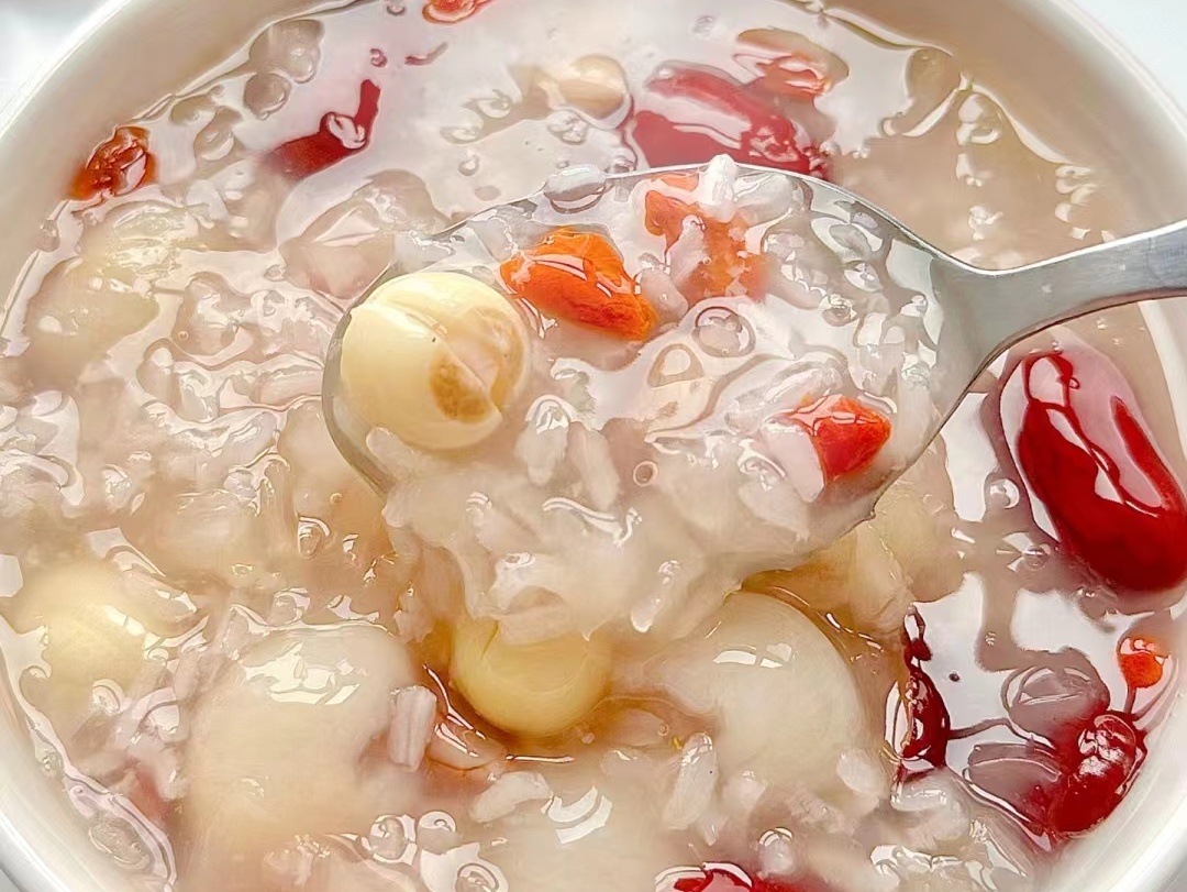 具有养心安神、利湿健脾的功效。莲子含有皂苷、生物碱等有效成分,莲子心含有的生物碱有强心作用,还能辅助降血压,不仅是一种粥品