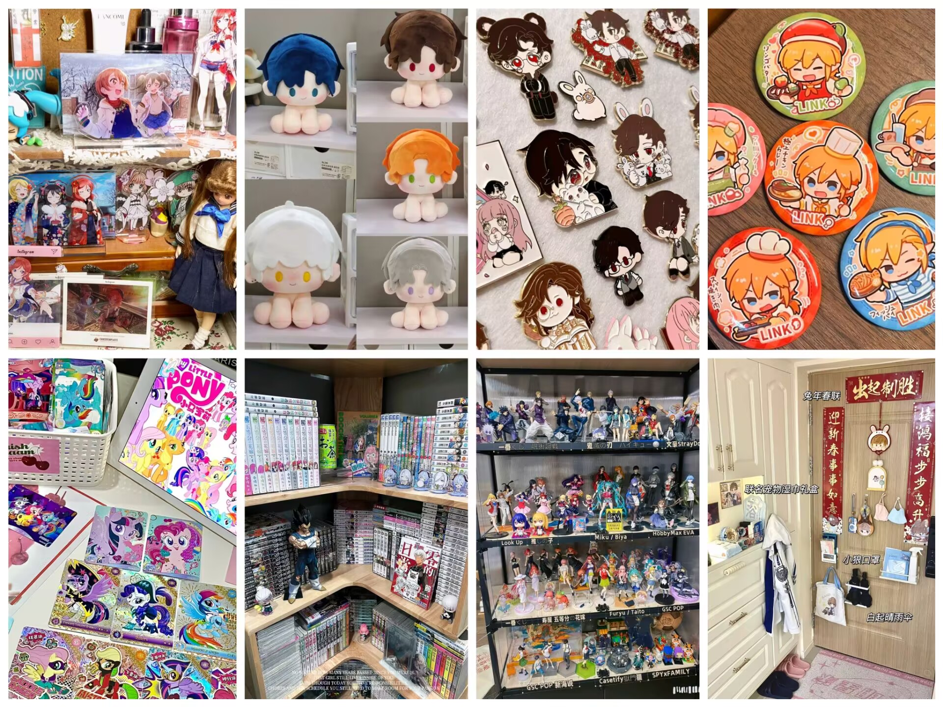 这些周边产品包括但不限于:马口铁徽章、亚克力制品、棉花娃娃、贴纸、书籍、手办、卡牌以及实用性物品。
