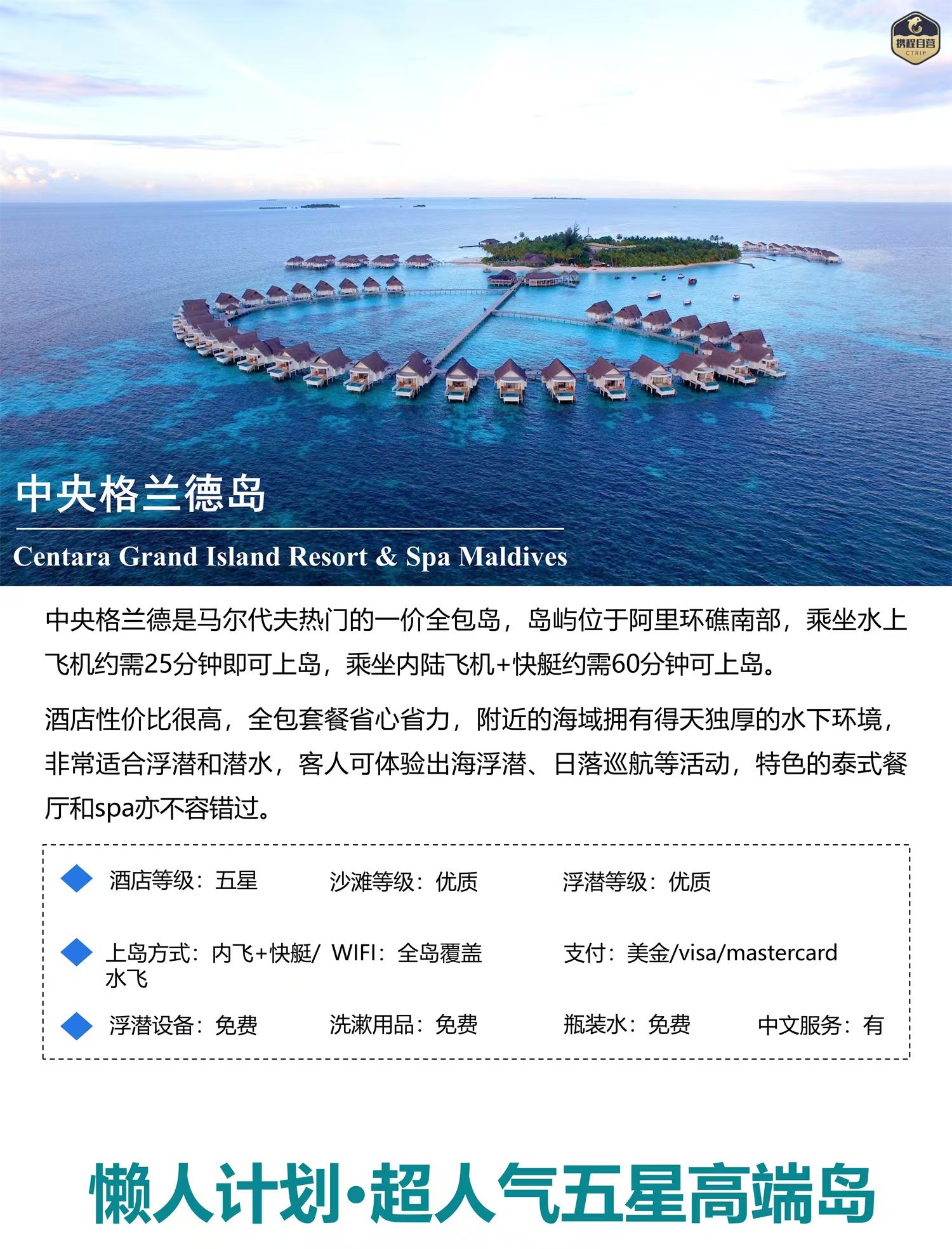 『懒人力荐」真正意义上的一价全包五星高端岛屿,三餐全含+酒水畅饮+超多免费活动+全岛WIFI覆盖。