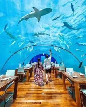 在水波光影间,邂逅一场水下的美食奇境,在满足食客的美食需求的同时提供多道菜的品鉴盛宴以及艺术摆盘的感官享受,又可以在这全球屈指可数的就餐环境中观赏无尽美景。