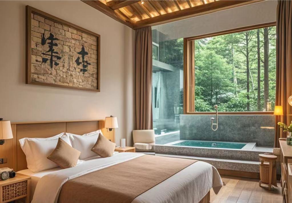 1.蜀锦套房(2 间)1000-1500元/晚) 2. 竹韵标准间(8 间)(500-600元/晚) 3. 川味家庭房(4 间)(600-800元/晚)