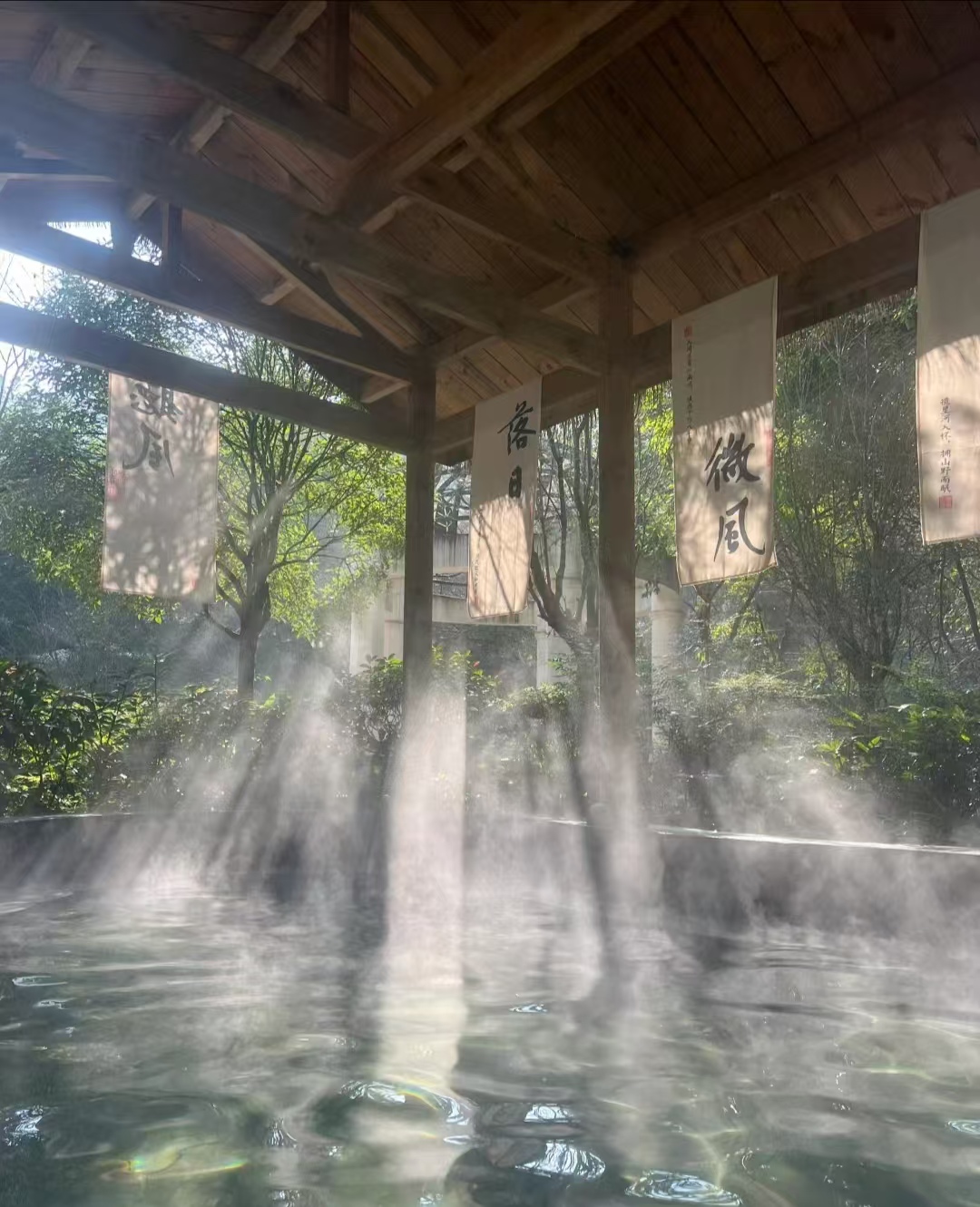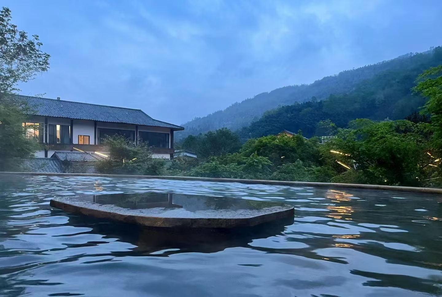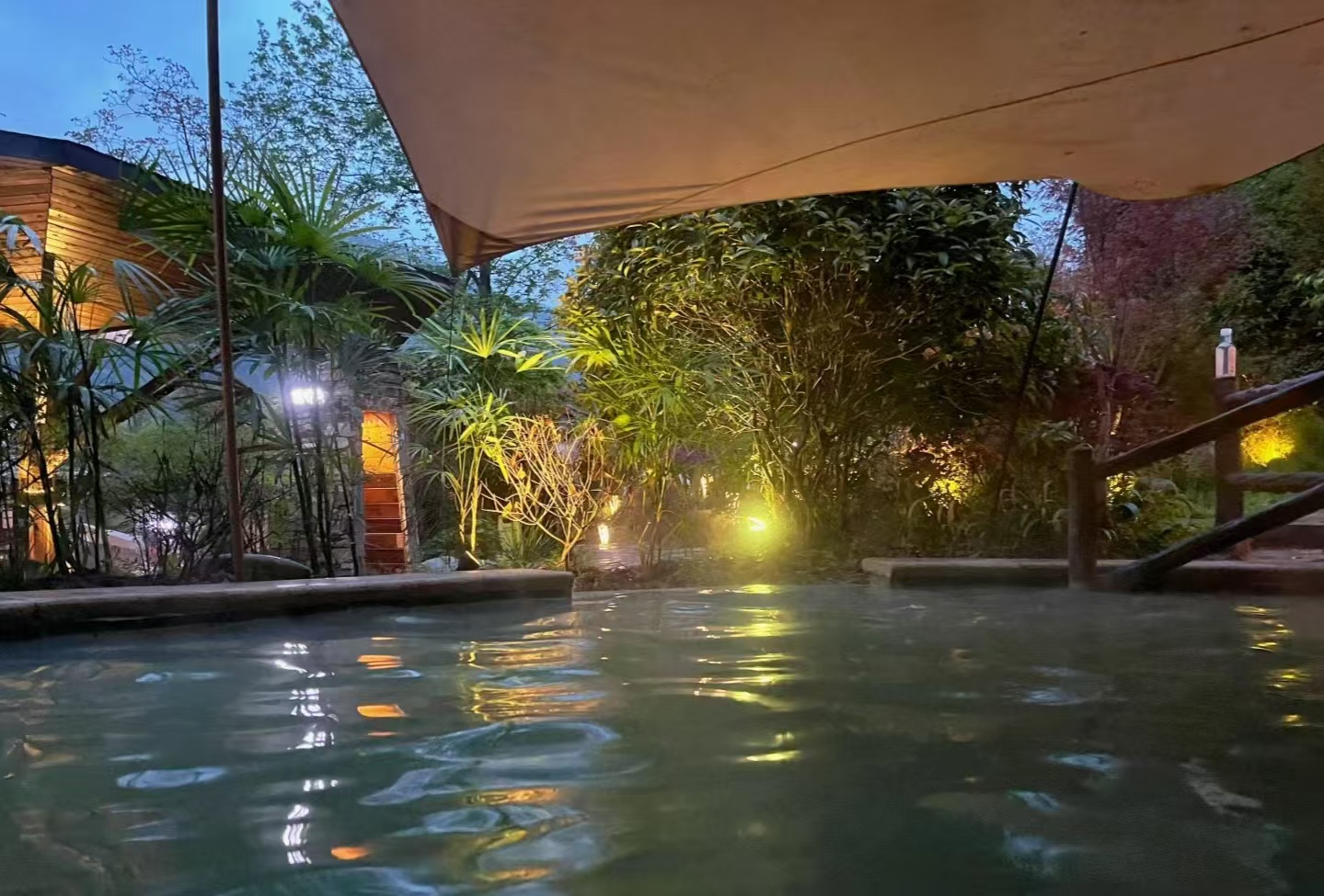 位于成都大邑县花水湾度假小镇,以温泉为主题的特色旅游民宿,在花水湾自然美景之中,面积1000平方米,周边森林环绕,空气清新。