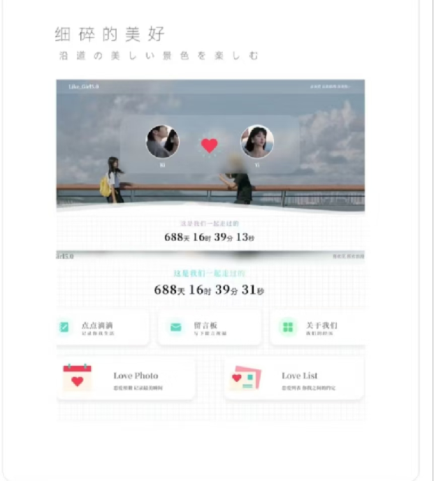 情侣空间:为情侣提供一个专属的空间,他们可以在里面记录旅行的点滴,如照片、文字、视频等。还可以设置纪念日提醒、共享旅行愿望清单等,增强情侣之间的互动和情感交流。