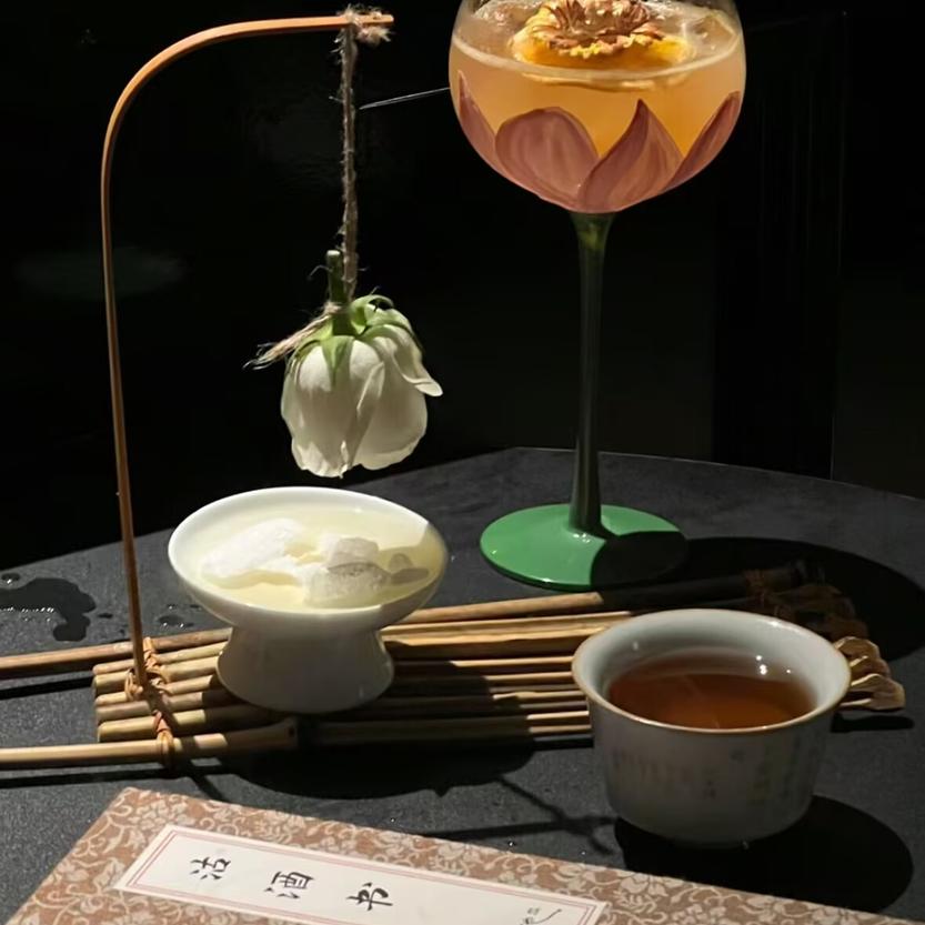 酒水构成:青梅酒 桂花茶 柚子果肉 糖浆