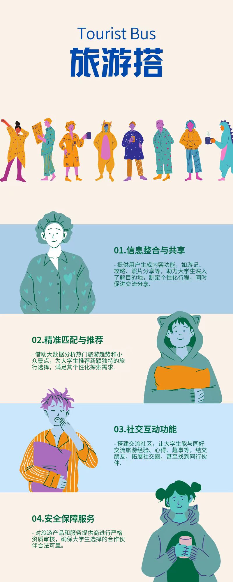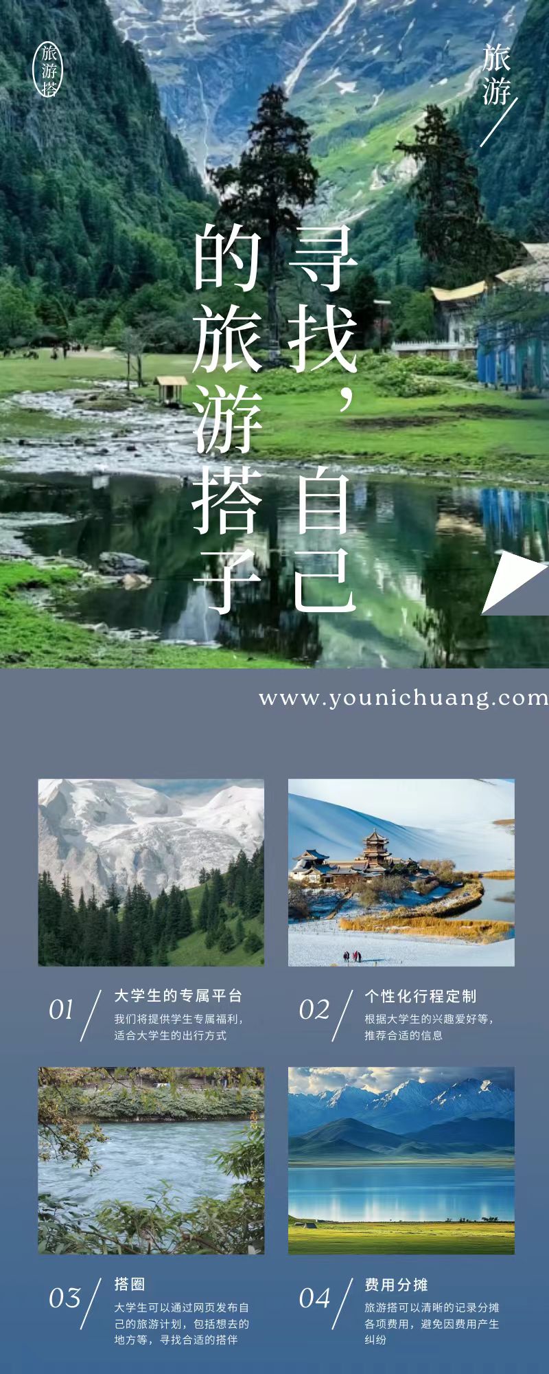 帮助大学生找到目的地相同、出行时间相近的“旅游搭子”。大学生可以通过网页发布自己的旅游计划,包括想去的地方、预计出行时间、旅行偏好等信息,也可以浏览其他人发布的信息,寻找合适的搭伴。